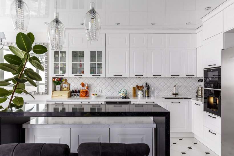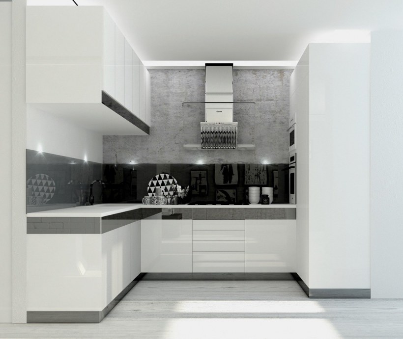 Современная кухня в черно белом цвете