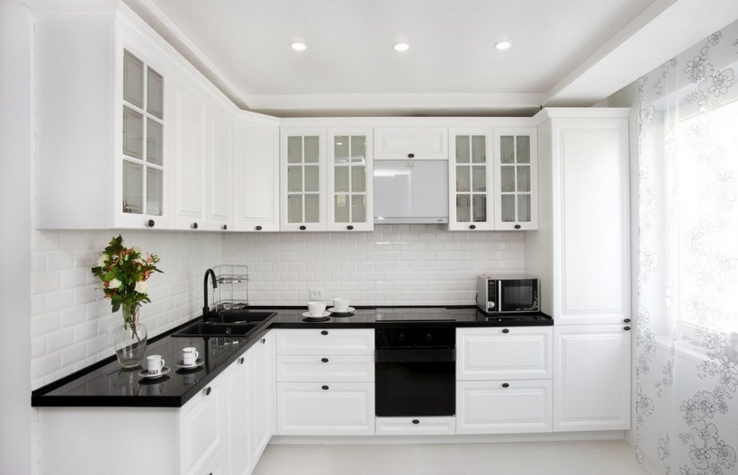 Белый гарнитур с черной столешницей