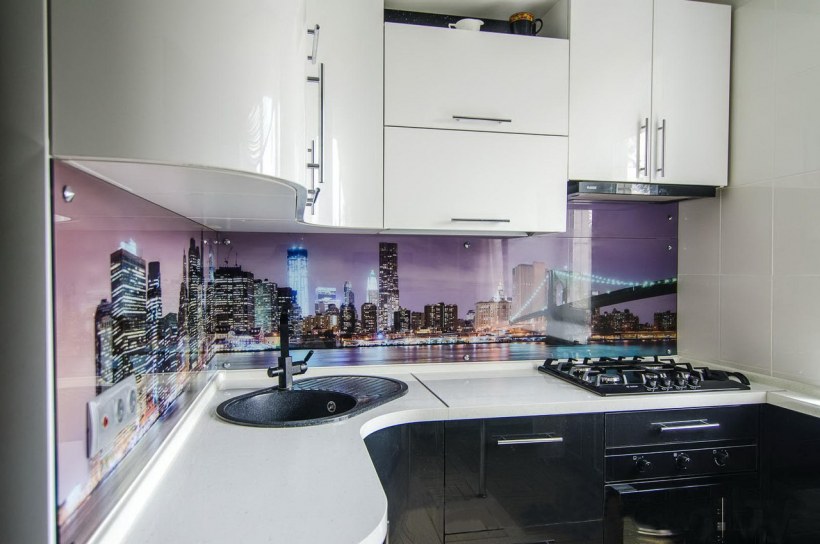 Стеклянный фартук для маленькой кухни