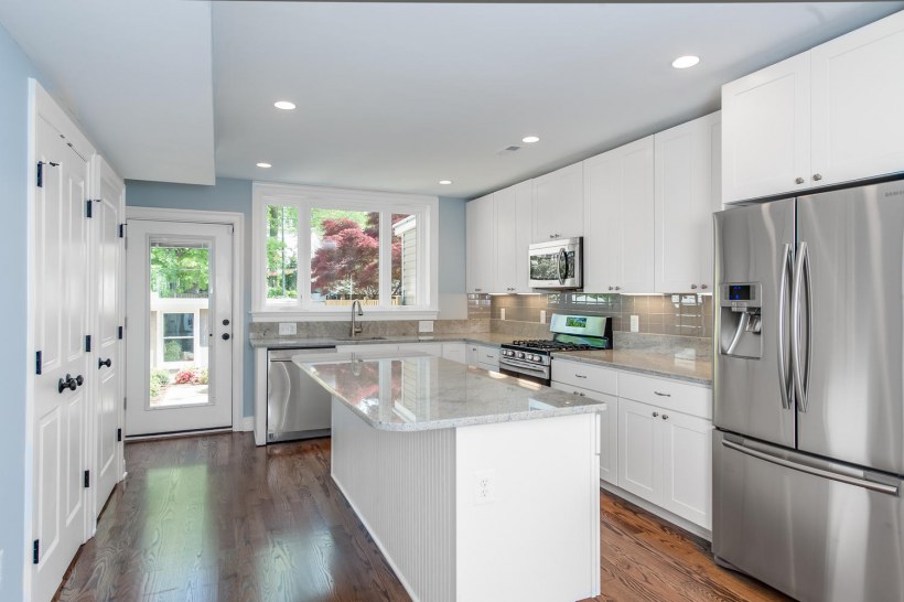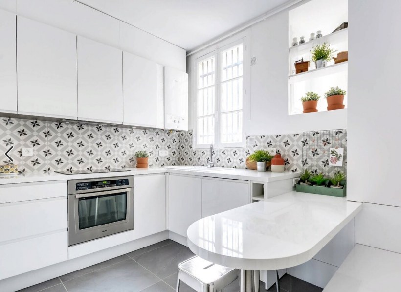 Белая столешница в интерьере кухни
