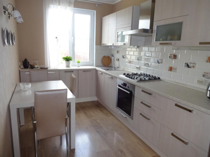 Кухонный гарнитур с белым фартуком