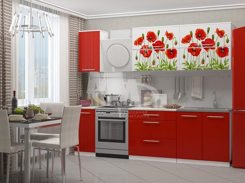 Кухня "красные маки" 1,6м