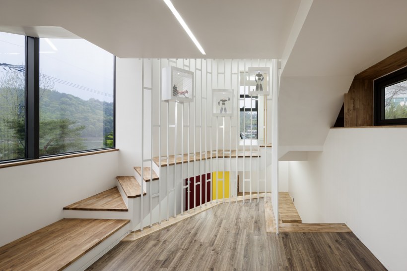 Дизайн холла мансарды с лестницей у окна (82 фото)