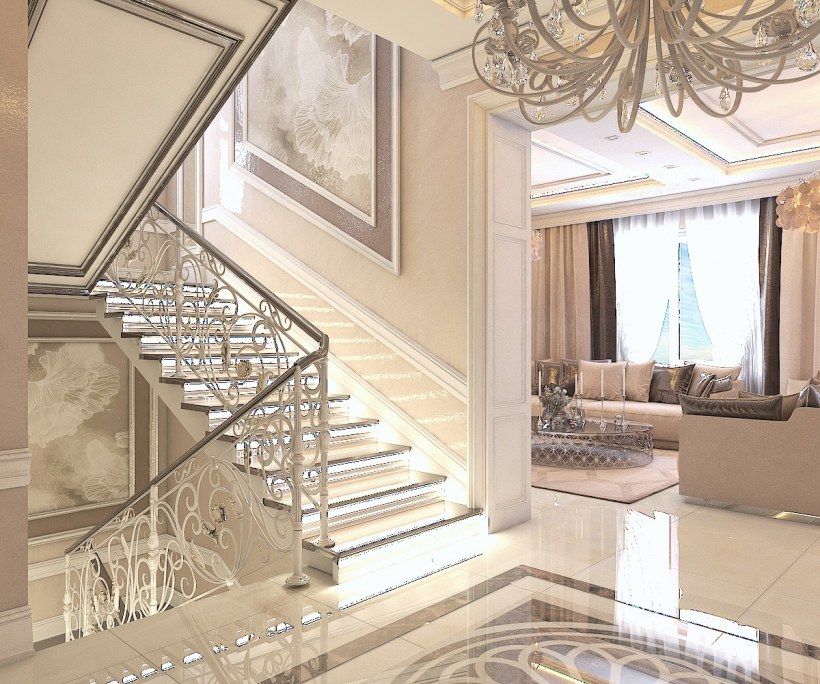 Интерьер холла с лестницей