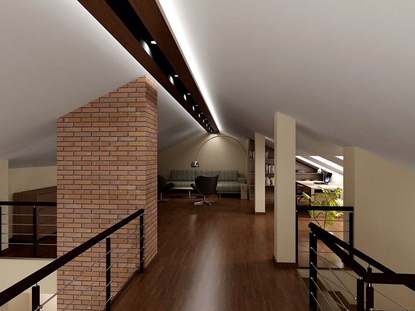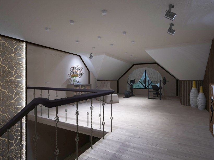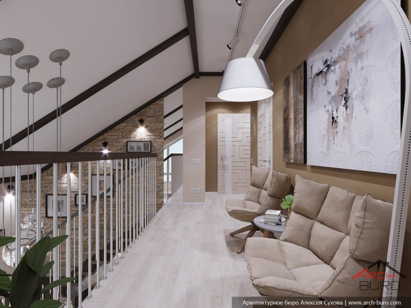 Интерьер холла на мансардном этаже