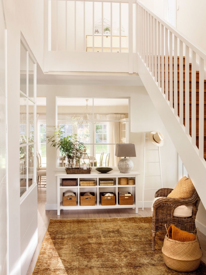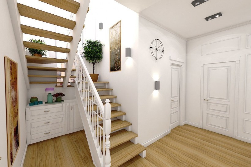 Светлая прихожая с лестницей