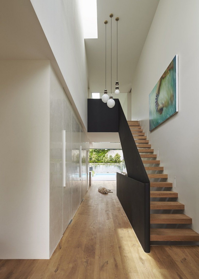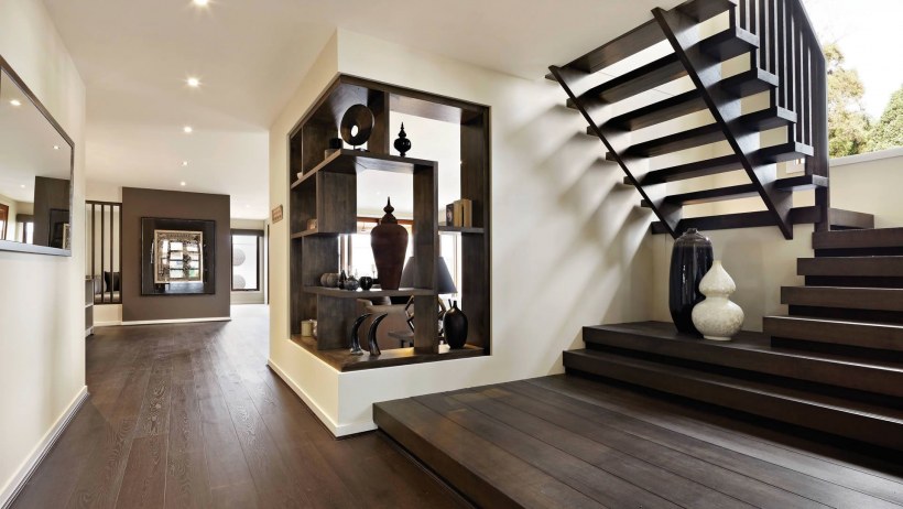 Холл с деревянной лестницей