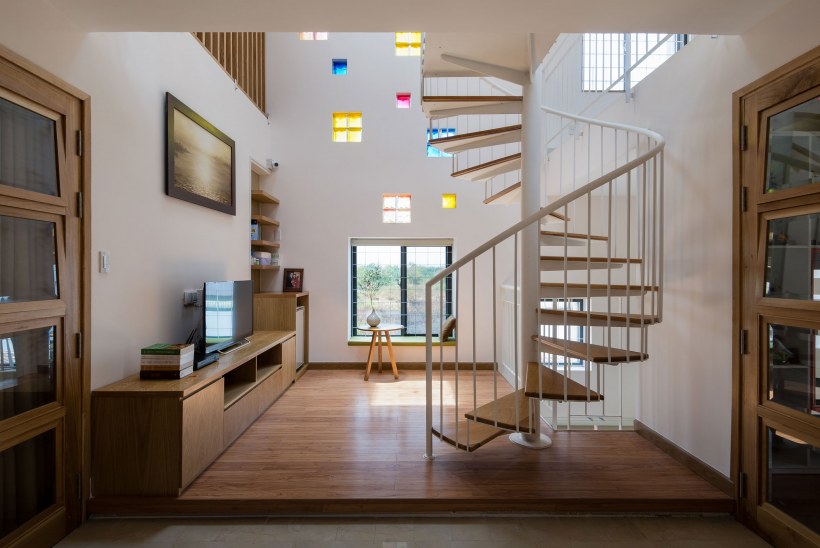 Винтовая лестница в гостиной