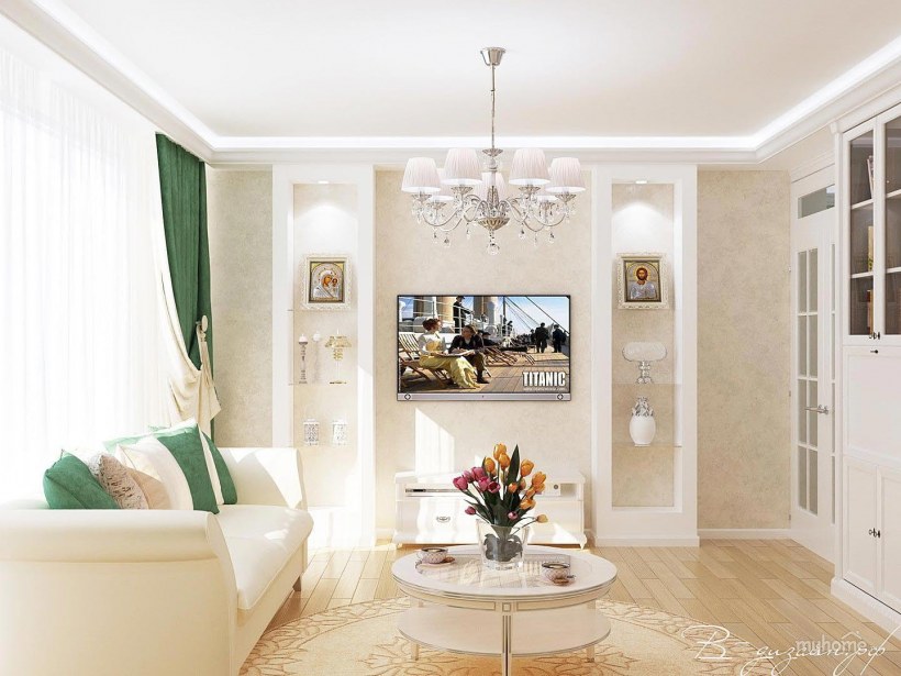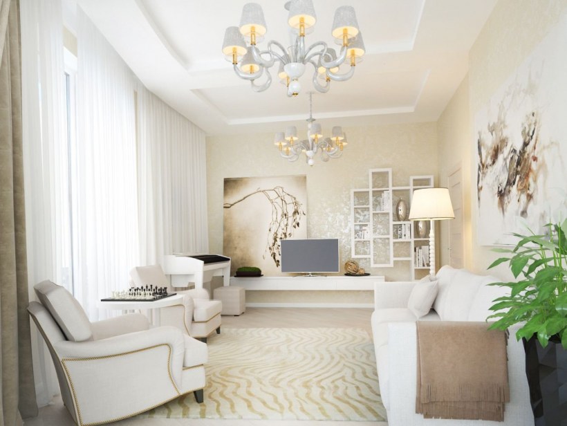 Интерьер гостиной в светлых тонах со светлой мебелью (73 фото)