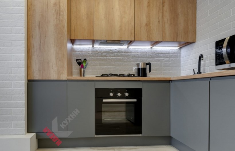 Серая кухня с белой столешницей