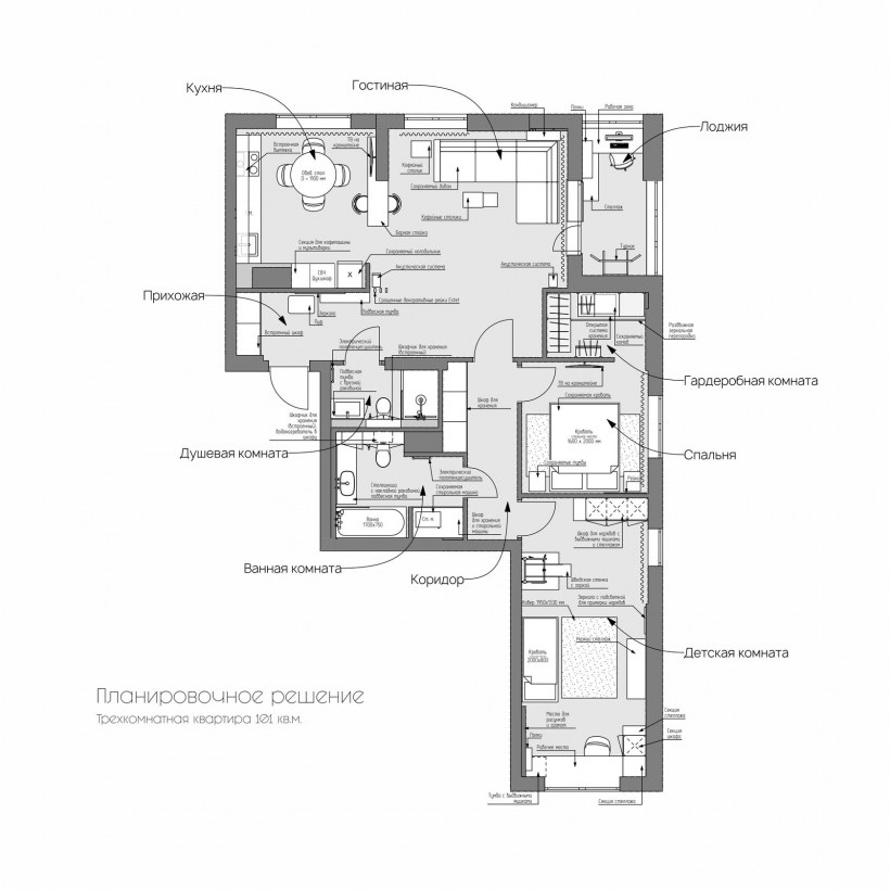Готовый дизайн проект трехкомнатной квартиры схемы (67 фото)