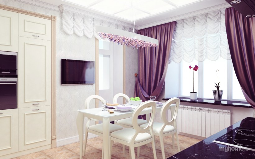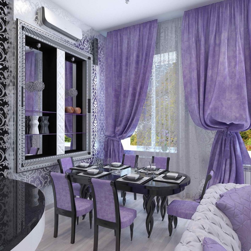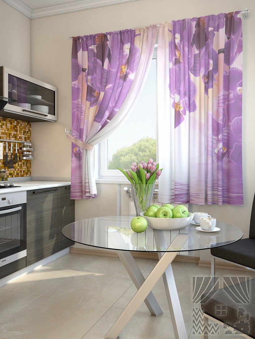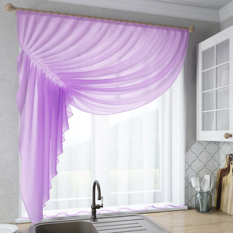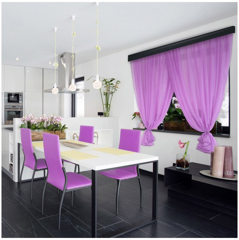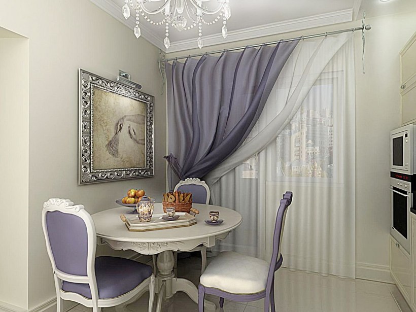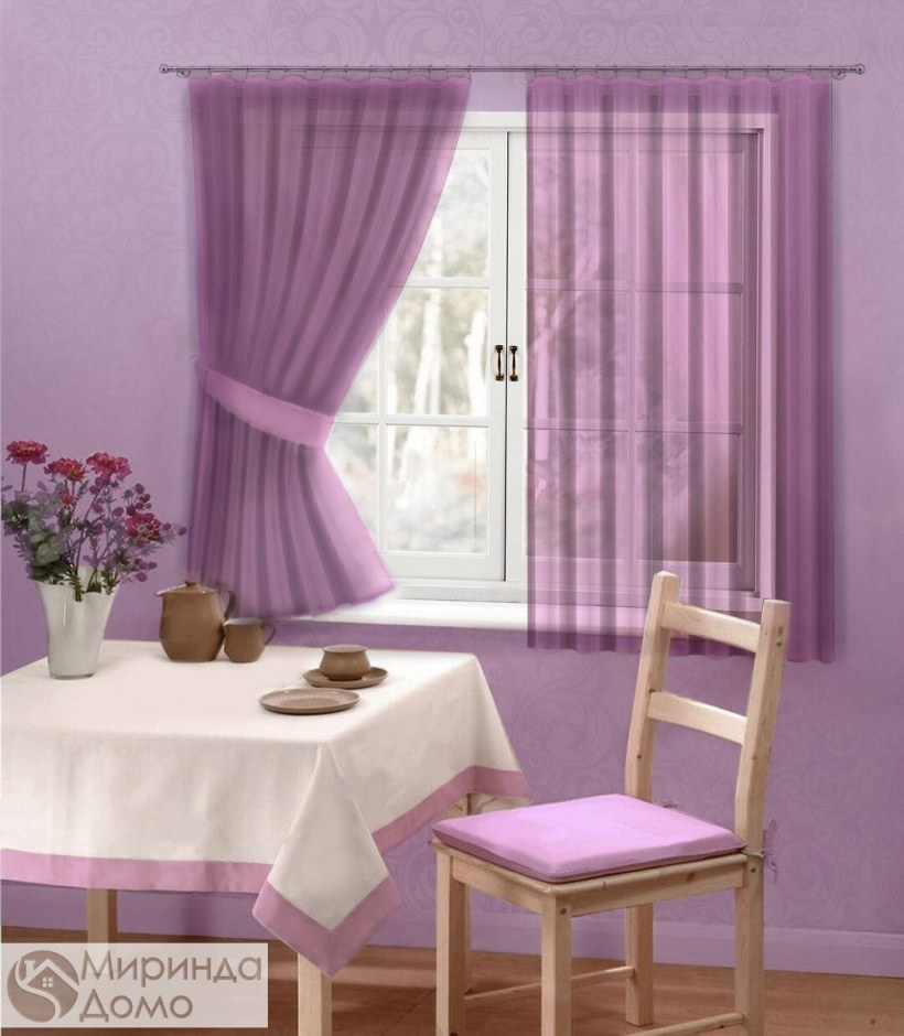 Сиреневые шторы на кухне в интерьере (69 фото)