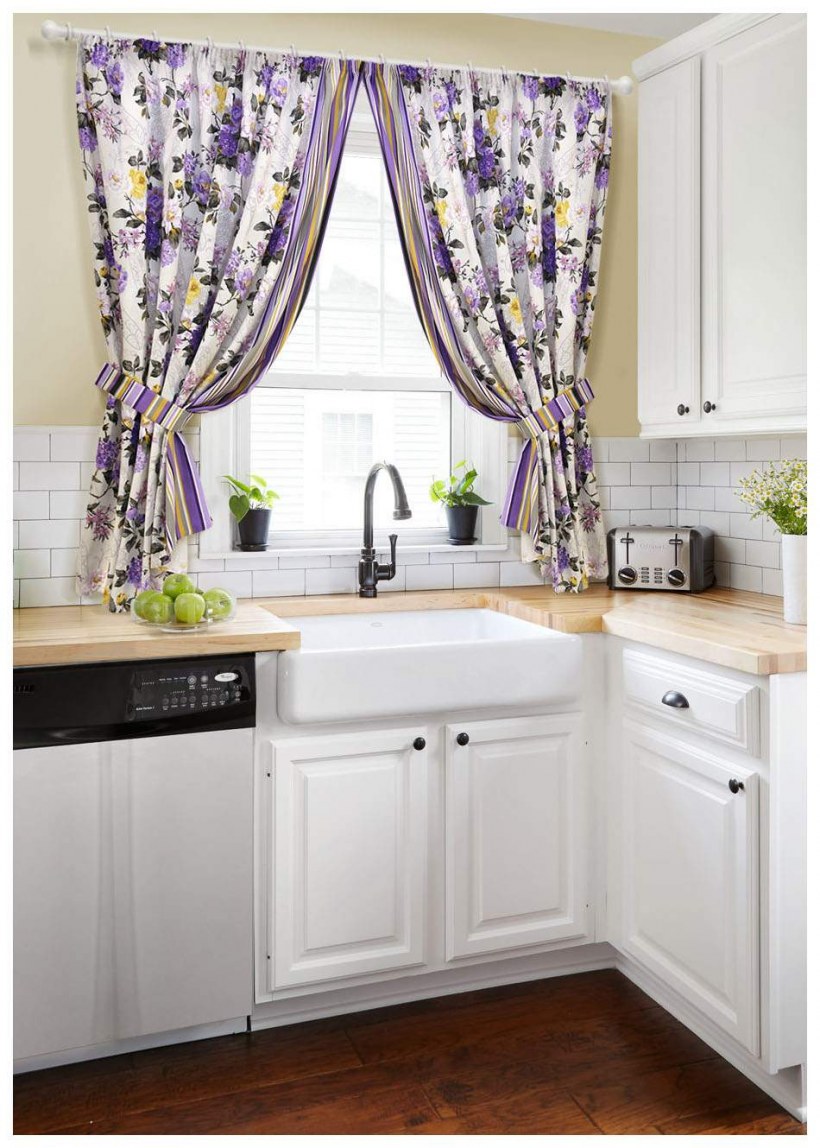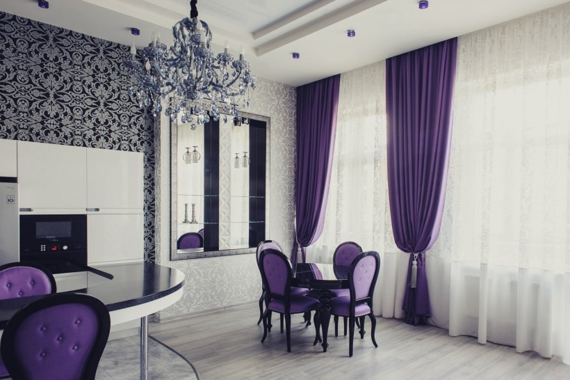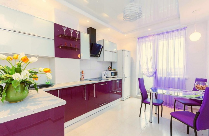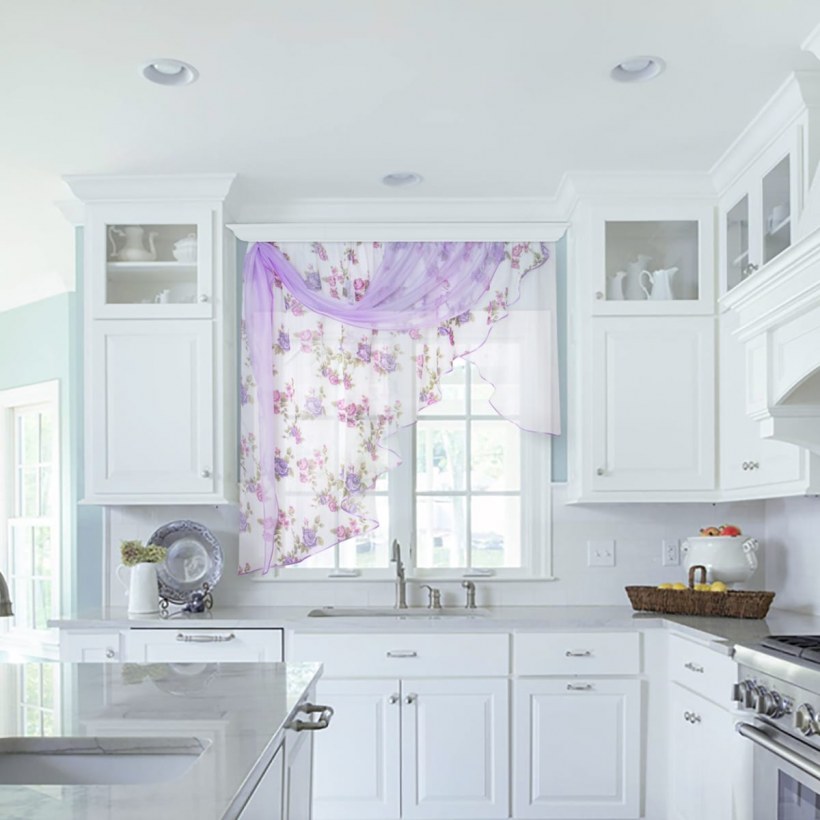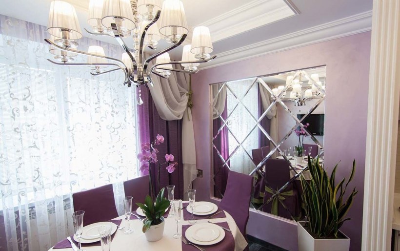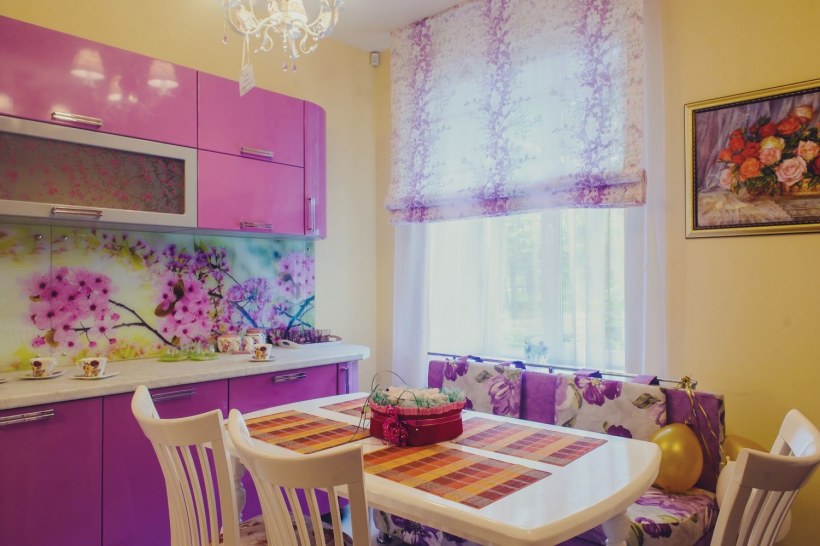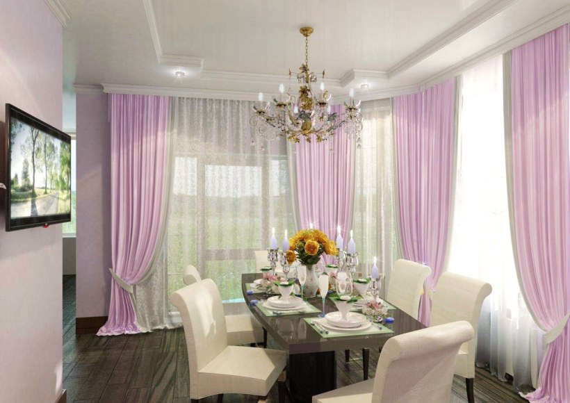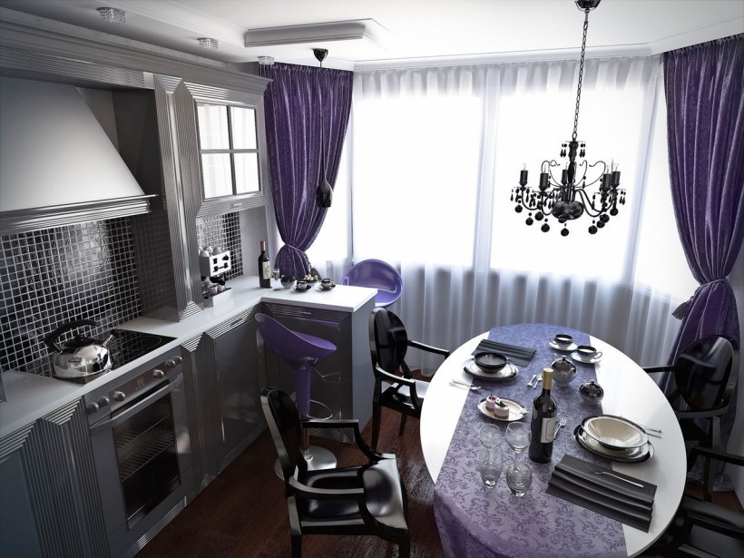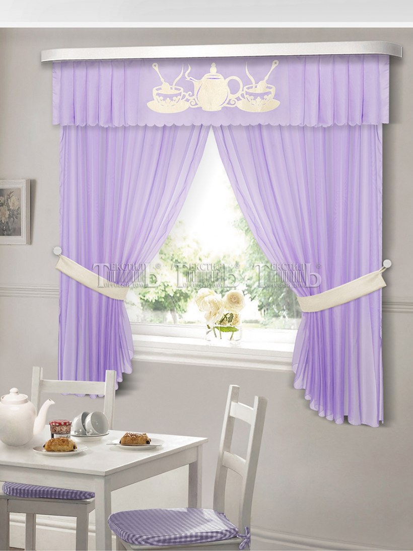 Сиреневые шторы на кухне в интерьере (69 фото)