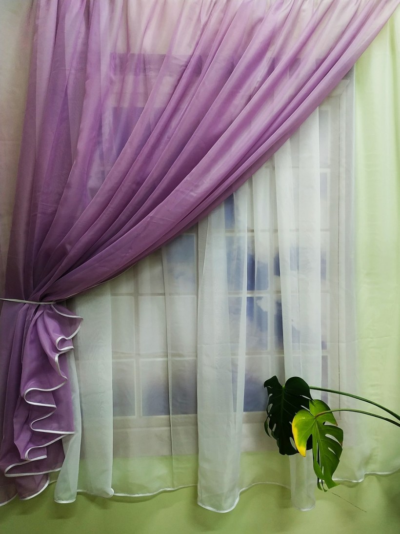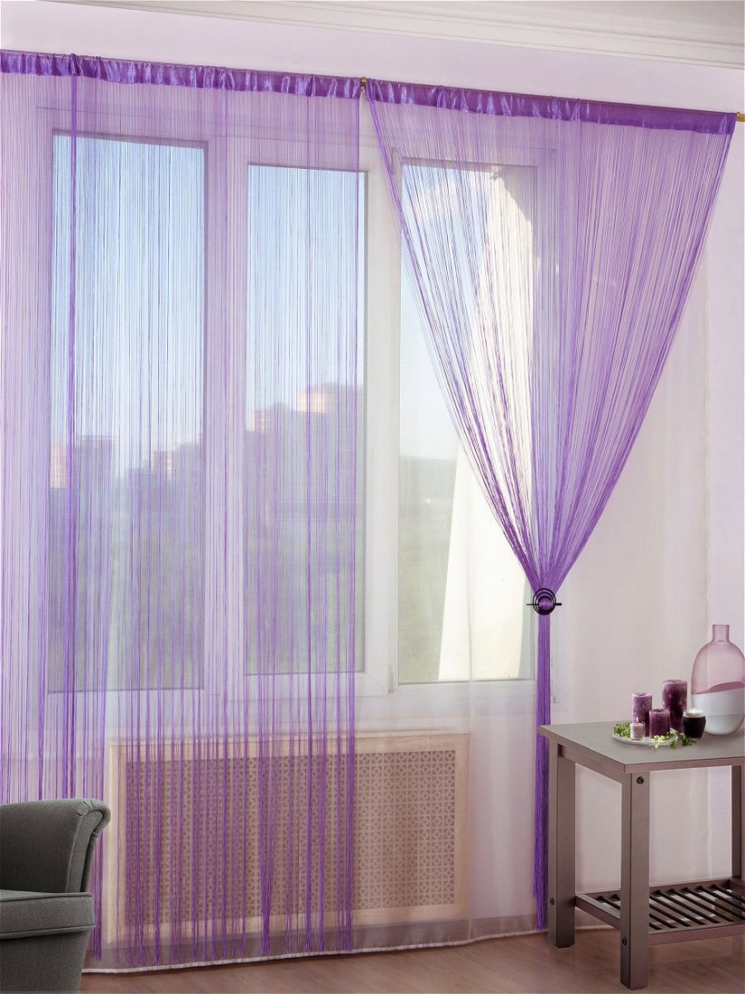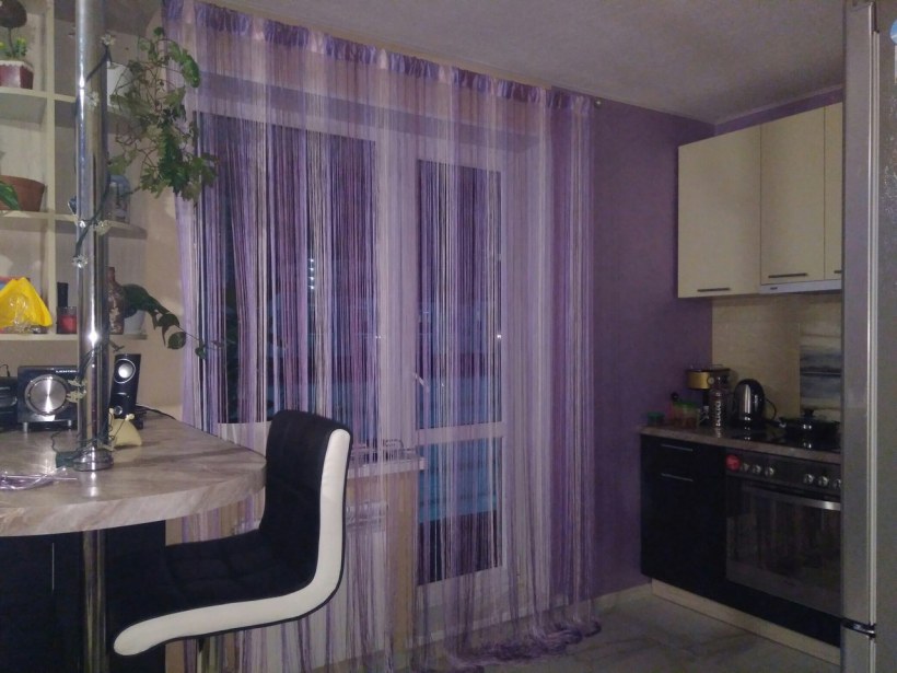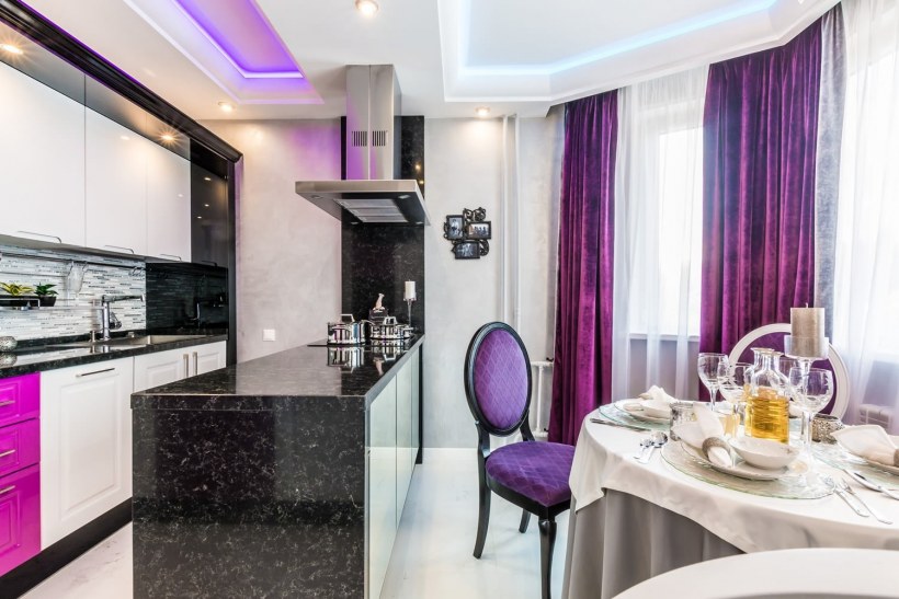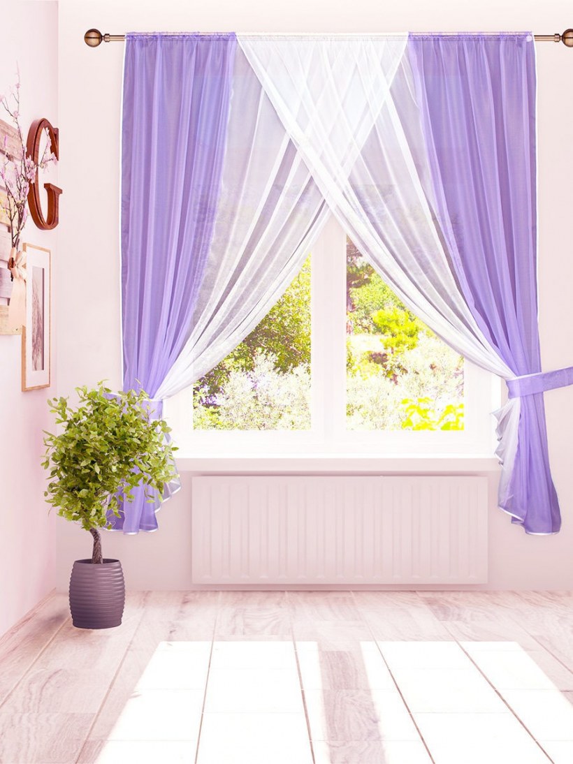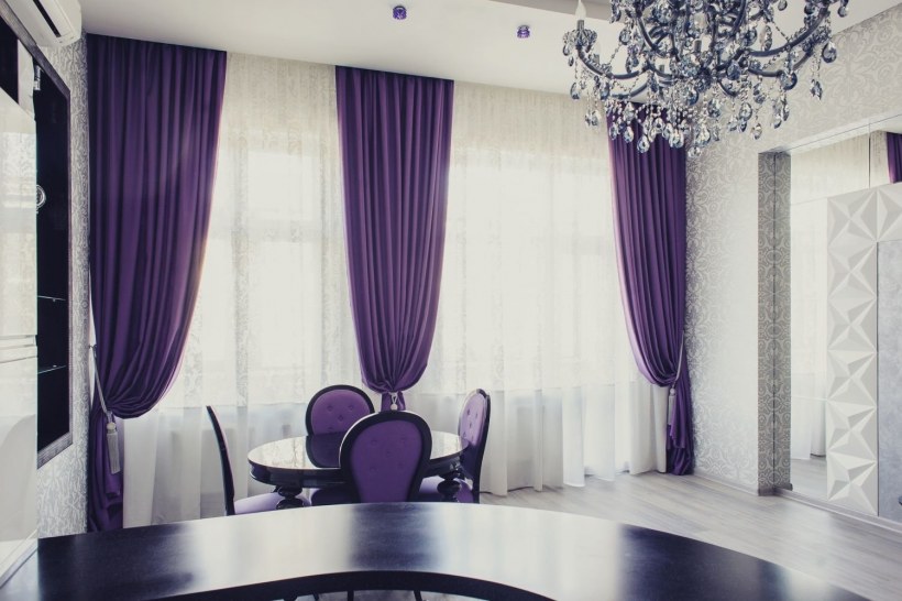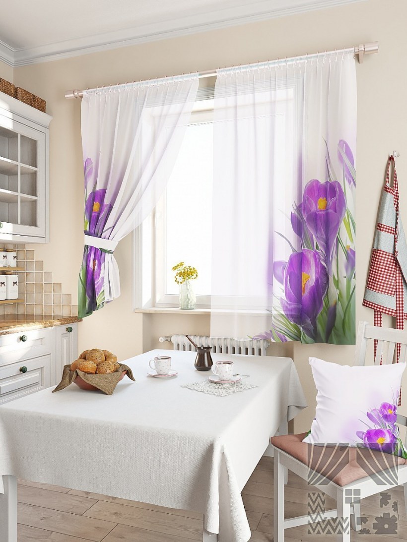 Сиреневые шторы на кухне в интерьере (69 фото)