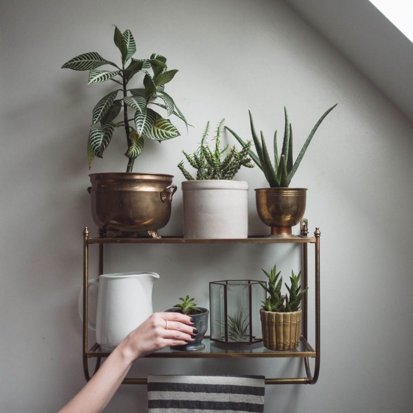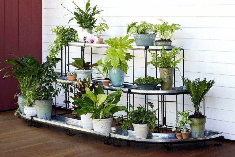Стеллаж с растениями в интерьере
