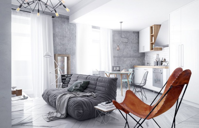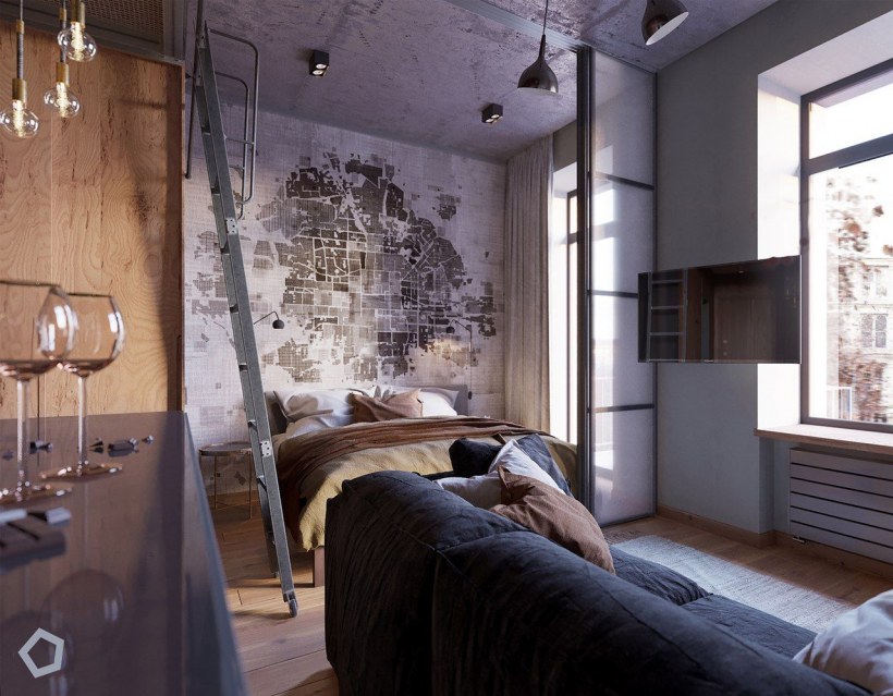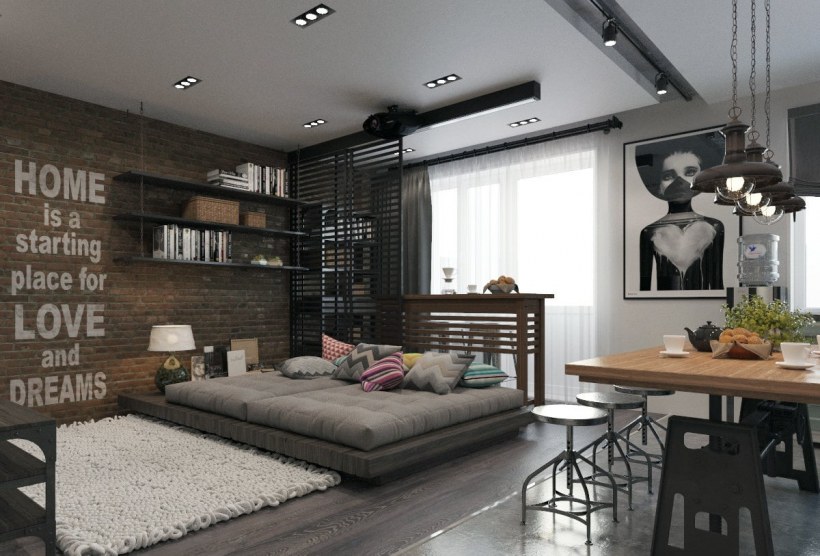 Дизайн маленькой студии в стиле лофт (78 фото)