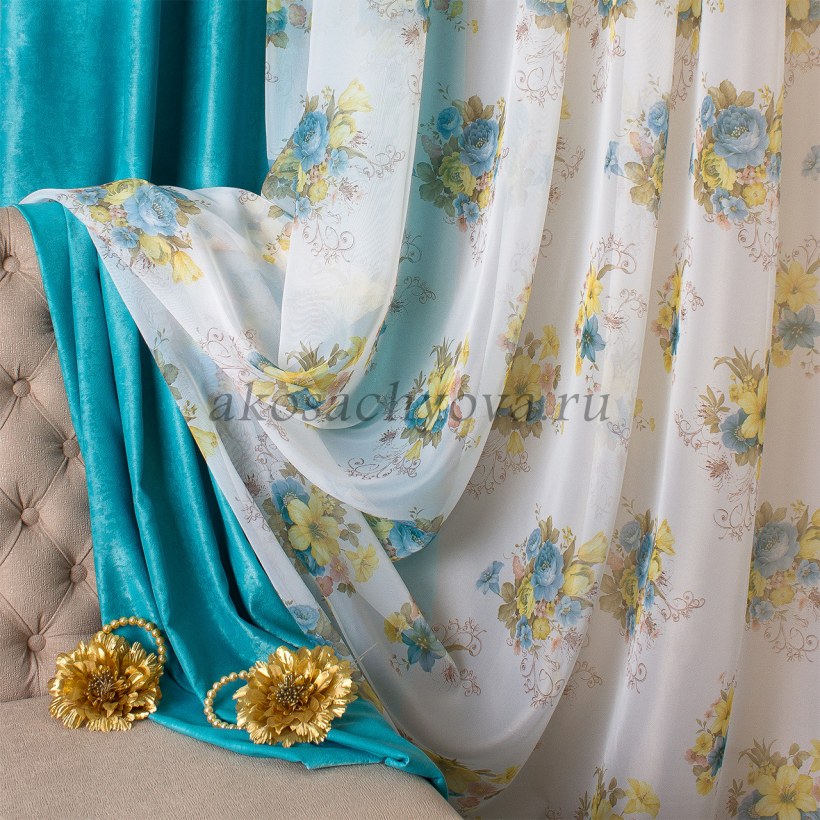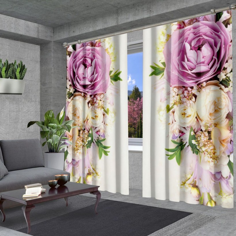 Фототюль розы и фиалки 150*270 (2 шт.) МАРТЕКС