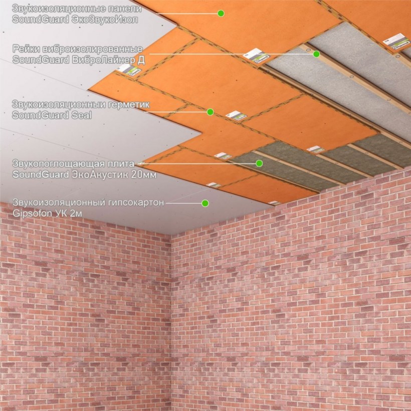 Схема монтажа звукоизоляции на потолок