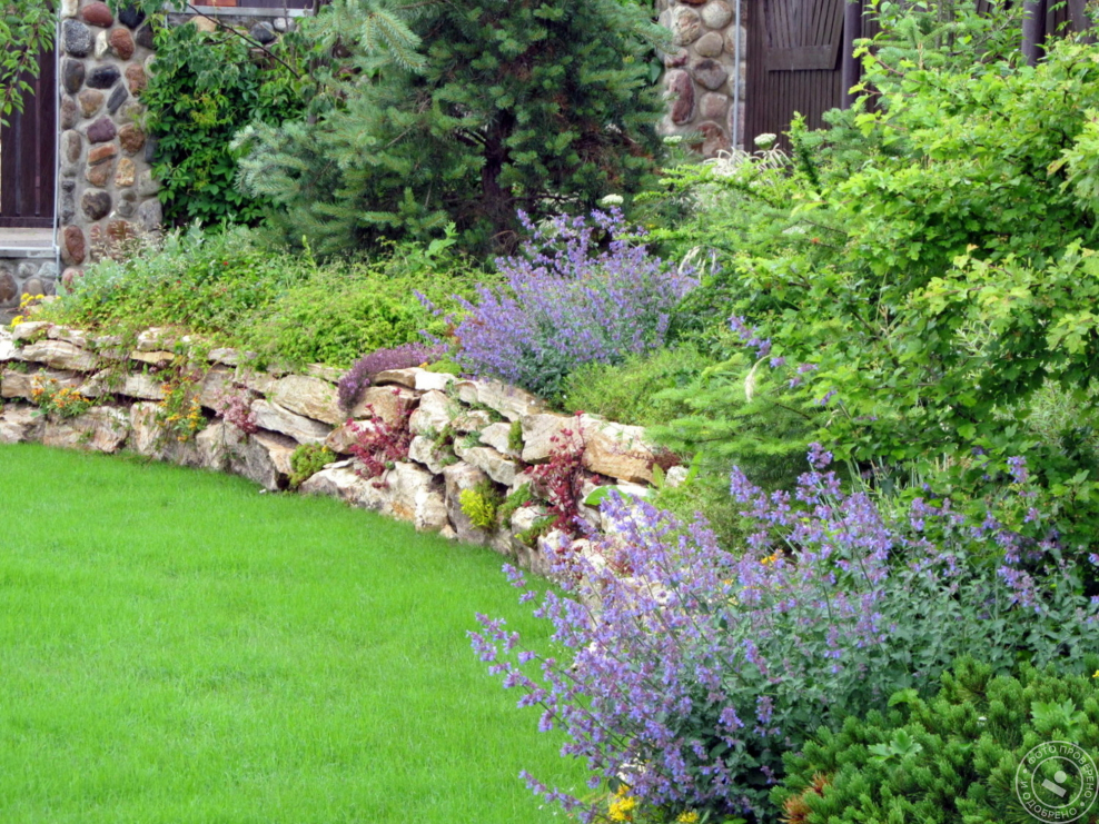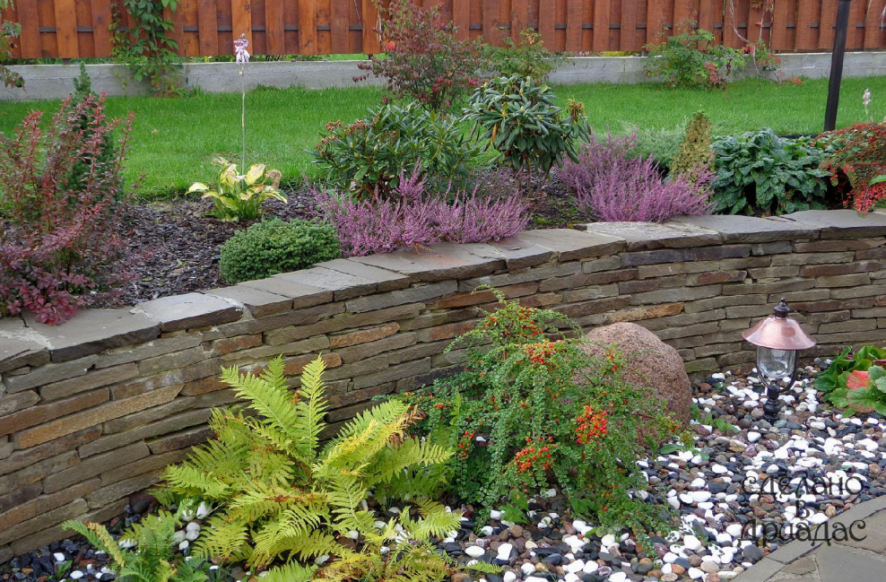 Цветник у подпорной стены