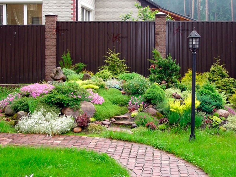 Альпийская горка у забора (53 фото)
