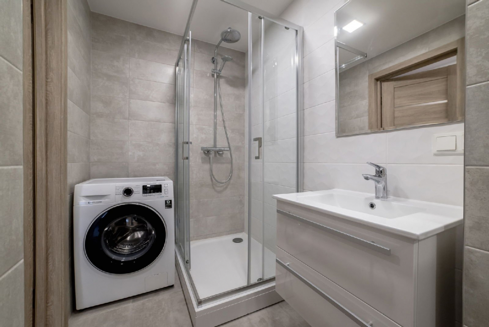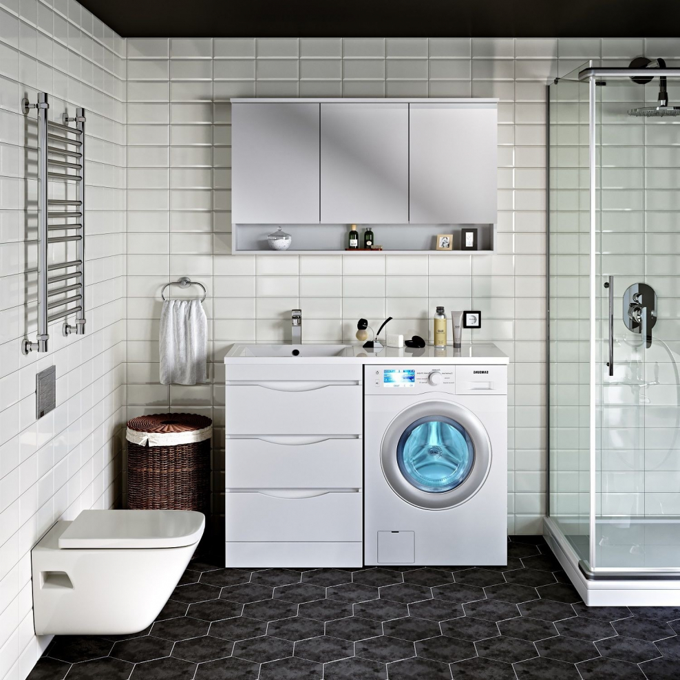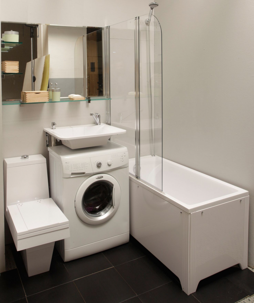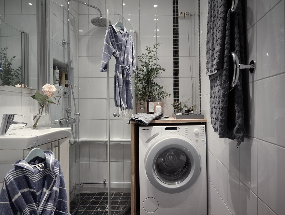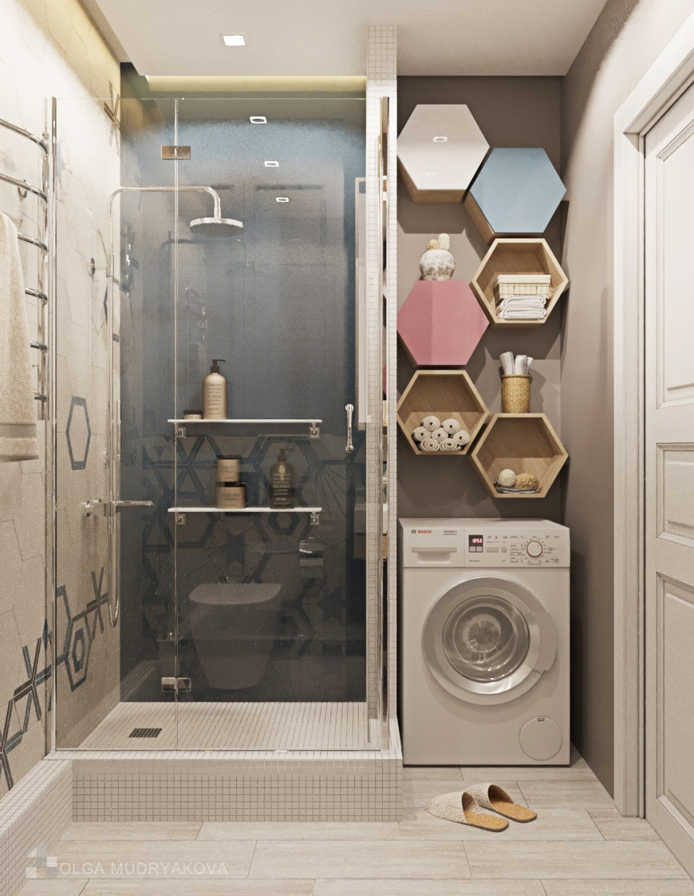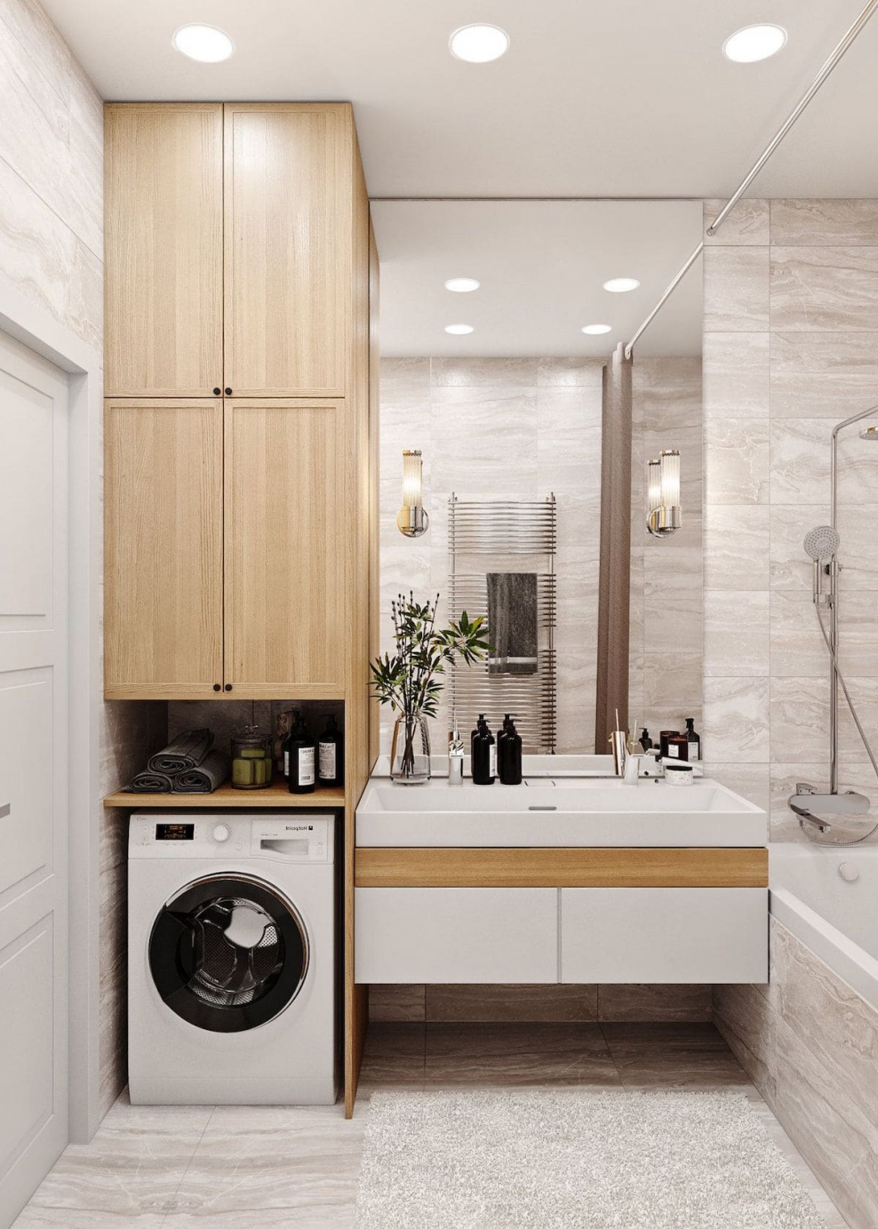 Дизайн ванной комнаты с душевым уголком и стиральной машиной (40 фото)
