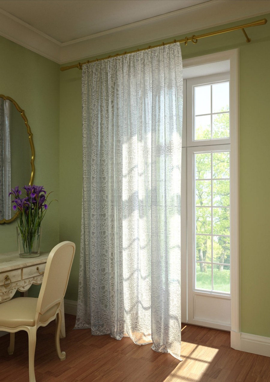 Тюль Kauffort Sakura - sh, 450х265, белый/зелёный