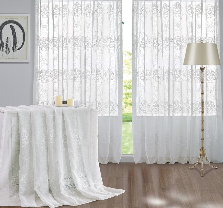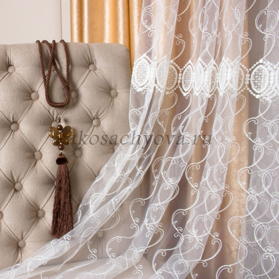 Вуаль Arco Doro 300х260, белый с коричневой вышивкой