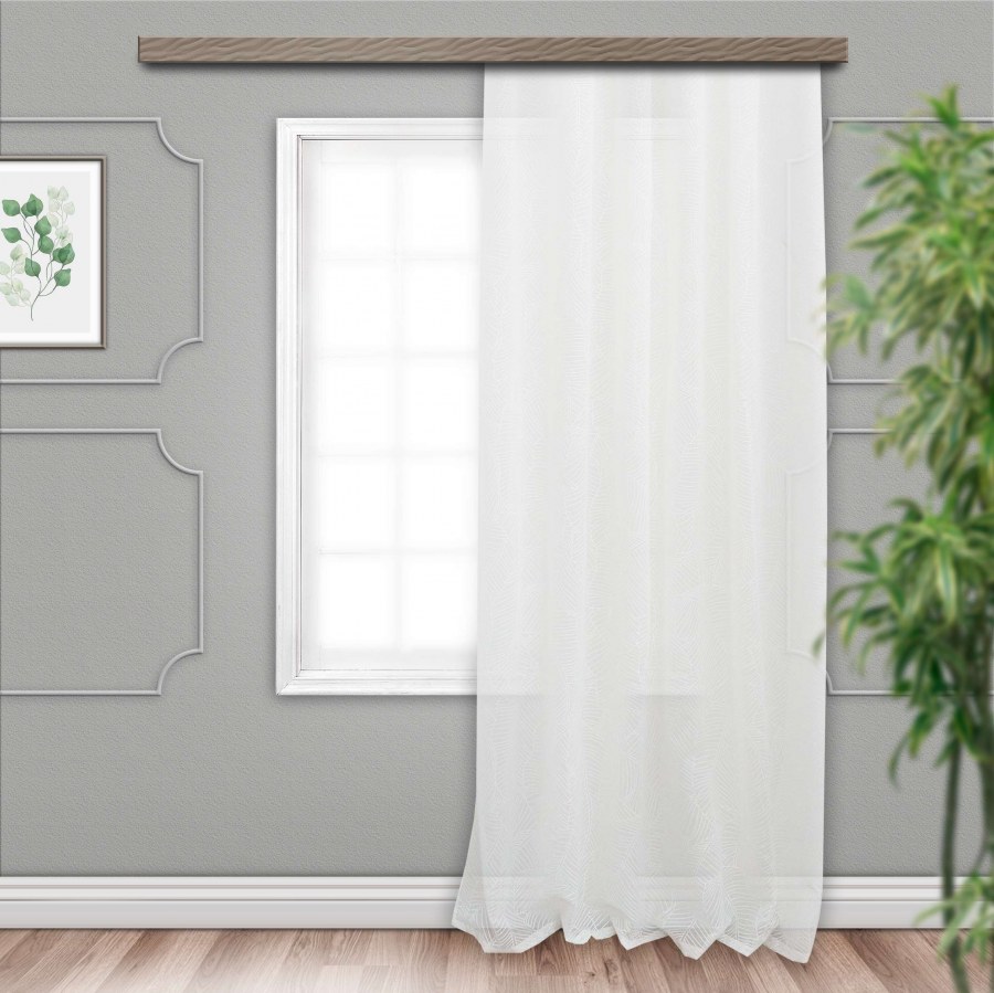 Штора тюль лен Деворе листья jyb005 500х275 см, молочный, ПЭ