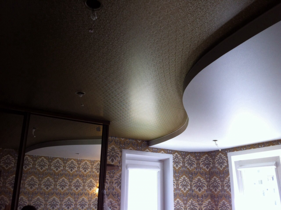 Натяжной потолок парча перламутр в интерьере (61 фото)