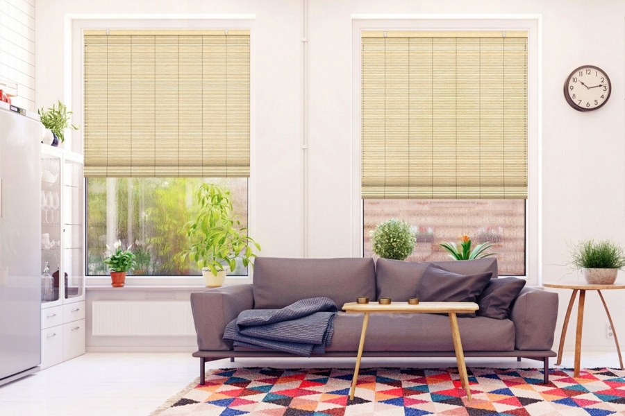 Рулонная штора Эскар бамбук 140х160, натур микс