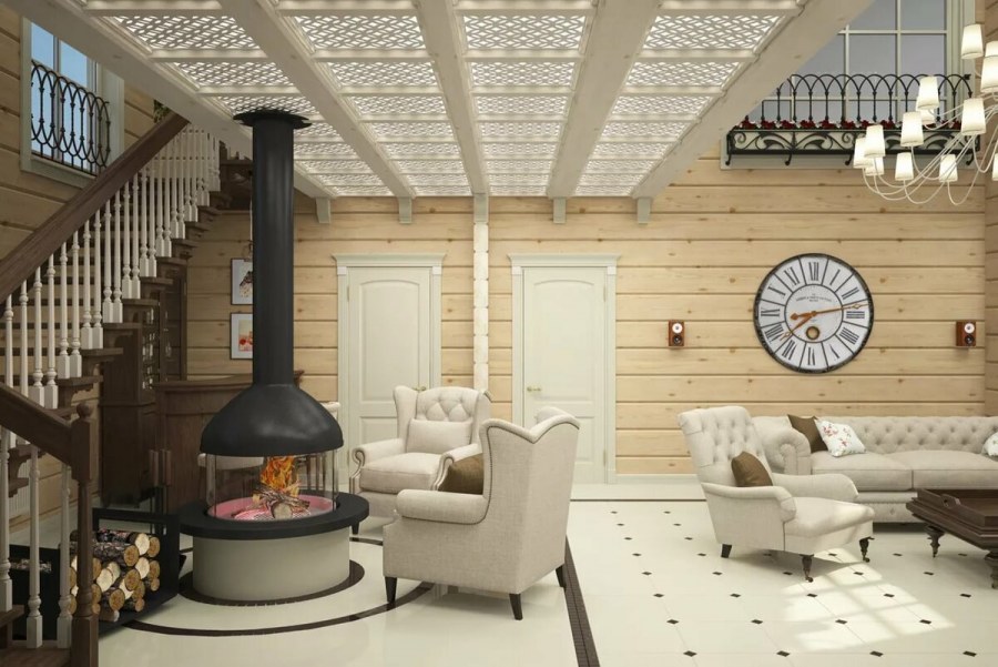 Интерьеры в домах из клееного бруса в скандинавском стиле