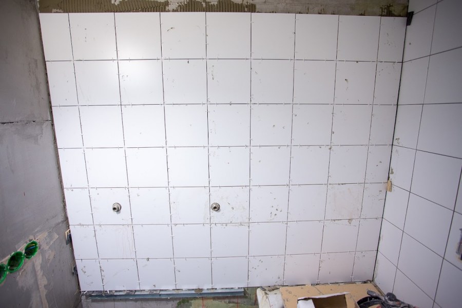 Кладка плитки в ванной на стену