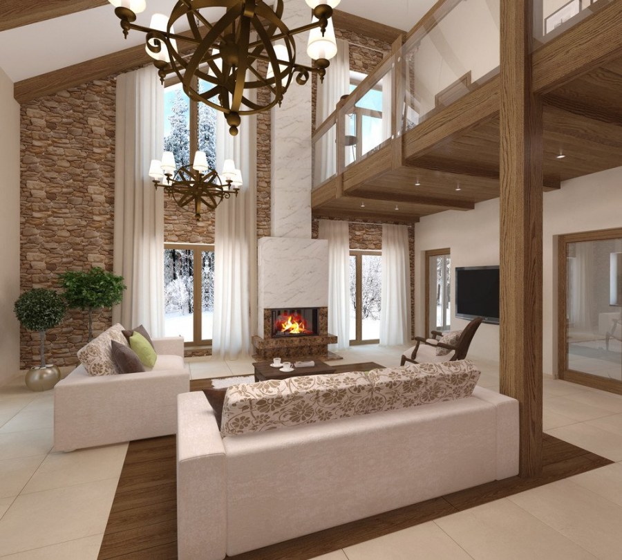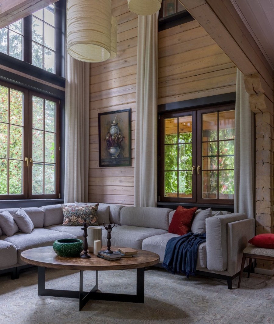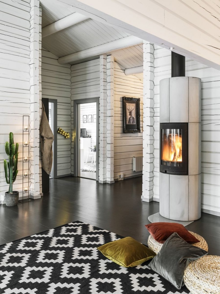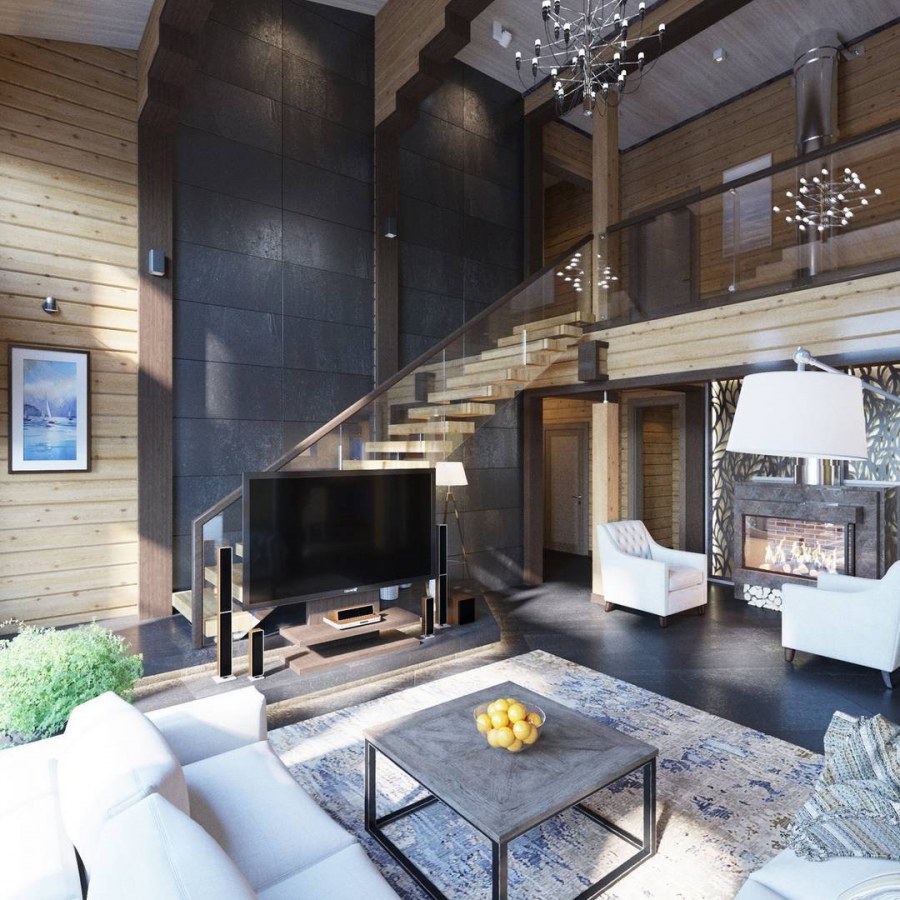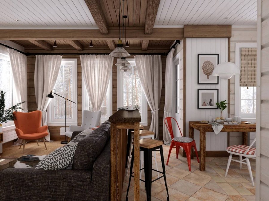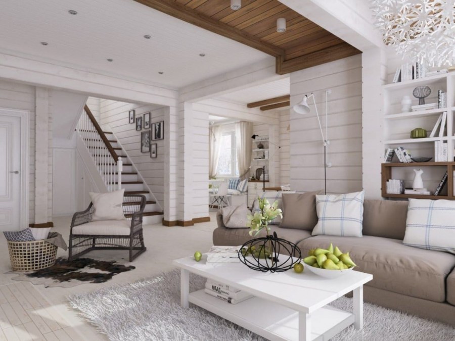 Интерьеры в домах из клееного бруса в скандинавском стиле