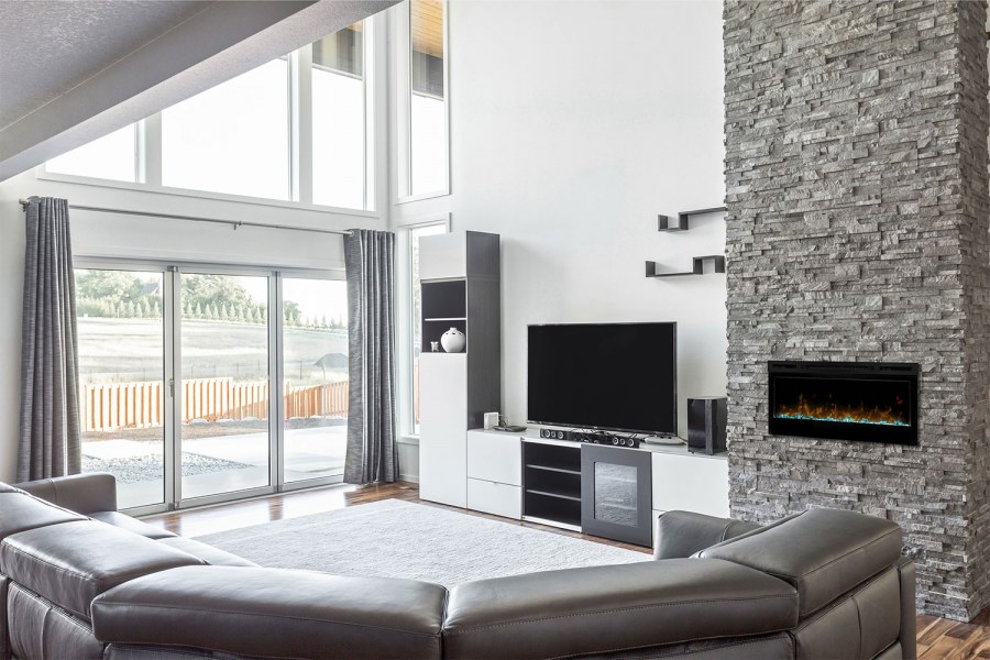 Электронный камин в интерьере гостиной (68 фото)