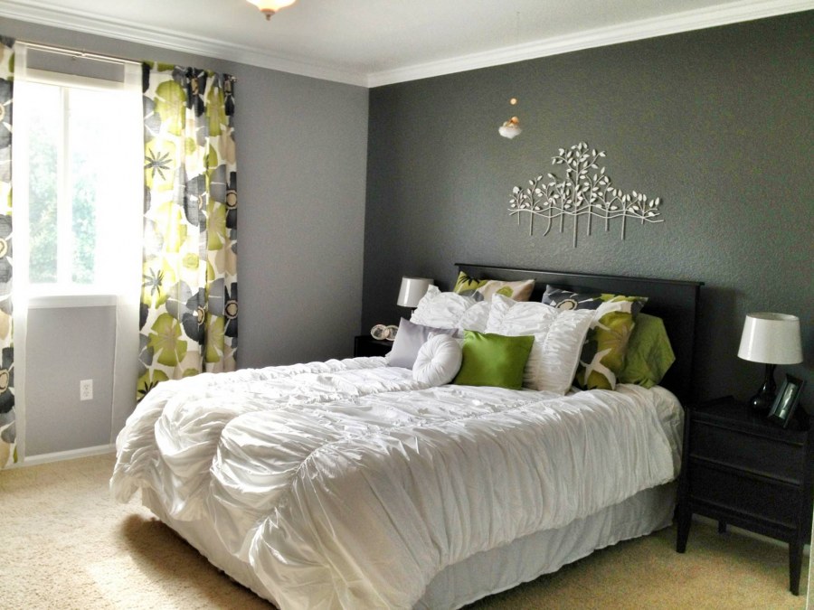 Спальня в серо зеленых тонах
