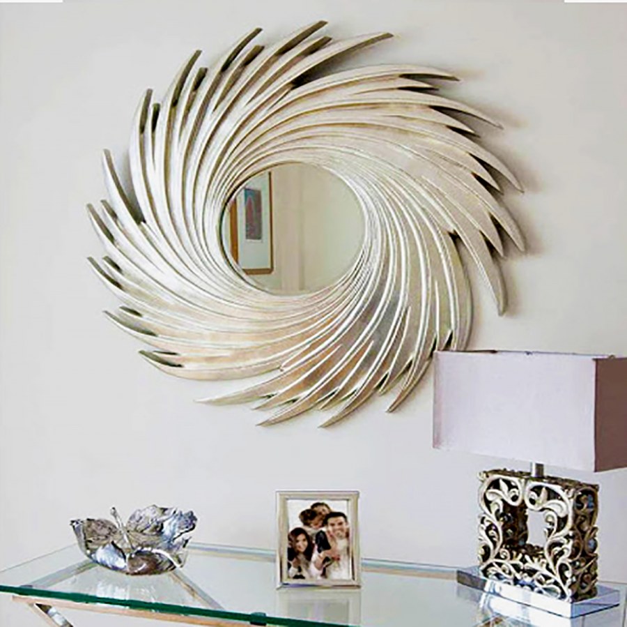 Зеркало-солнце в раме Свирл серебро