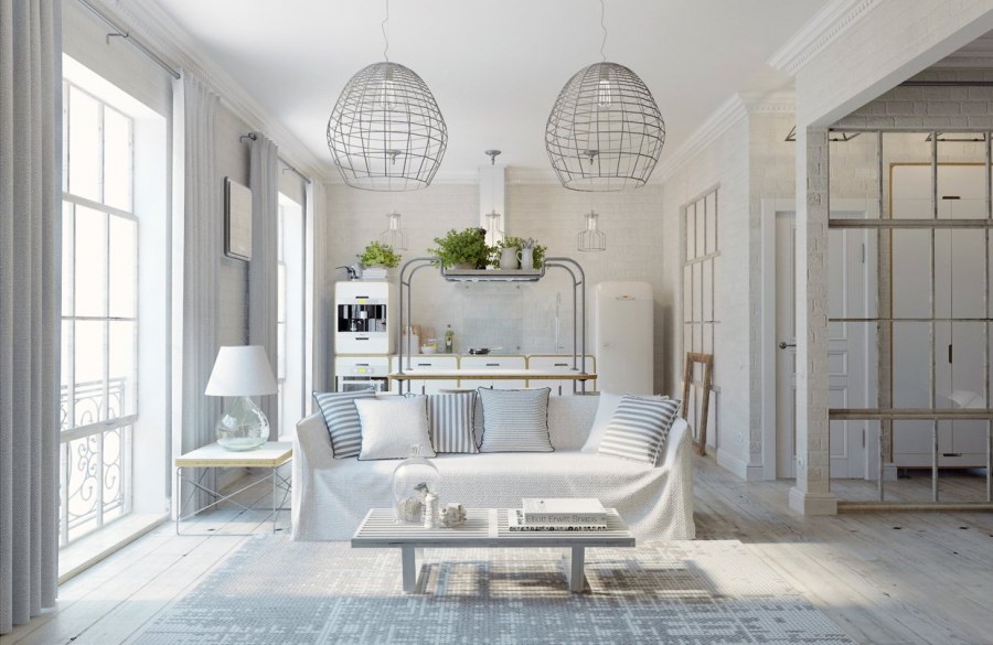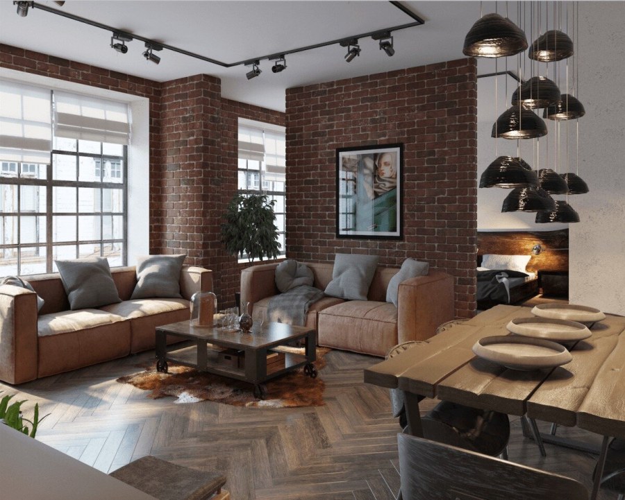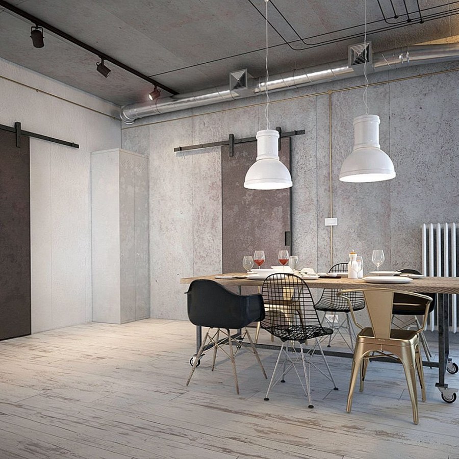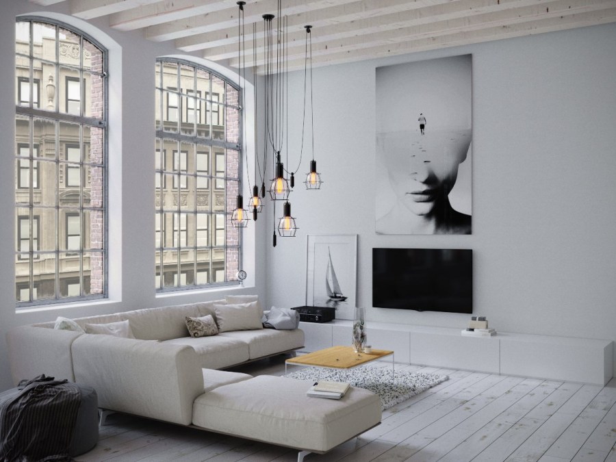 Интерьер в стиле лофт в светлых тонах (69 фото)