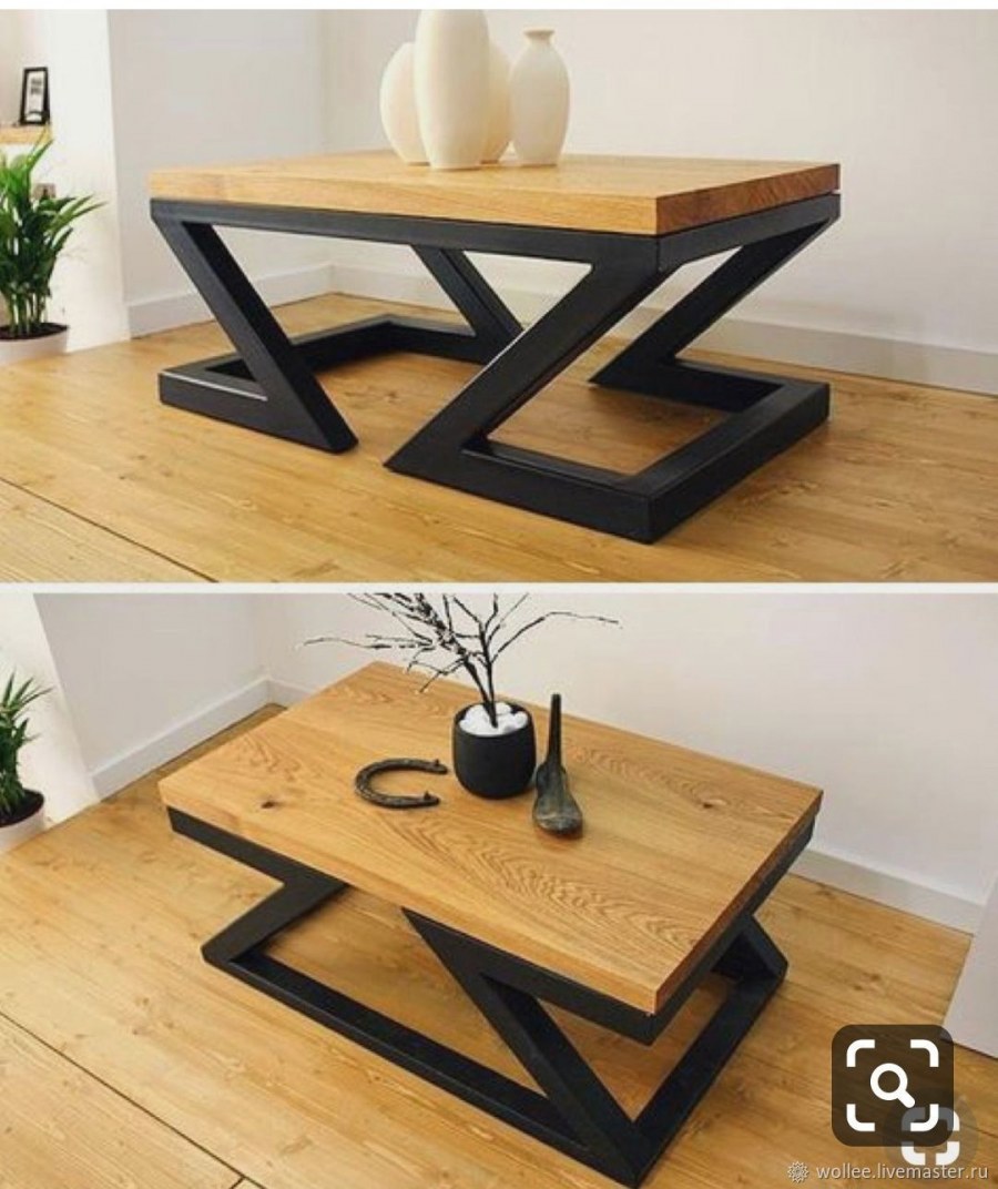 Журнальный стол из металла и дерева (59 фото)