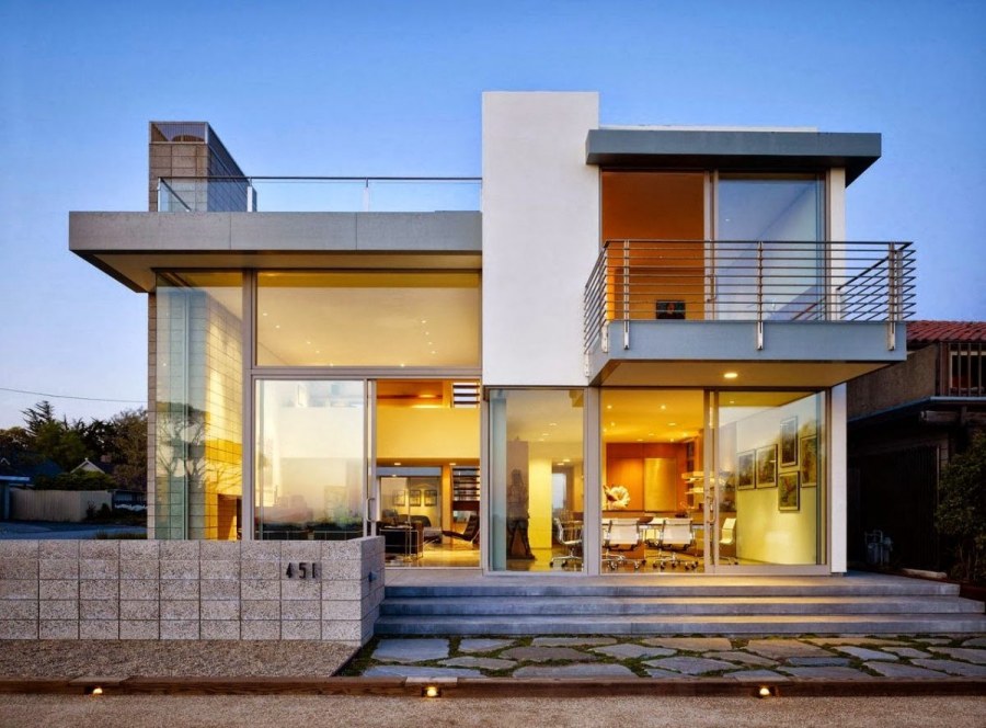 Дом с плоской крышей и панорамными окнами одноэтажный