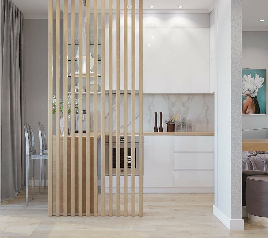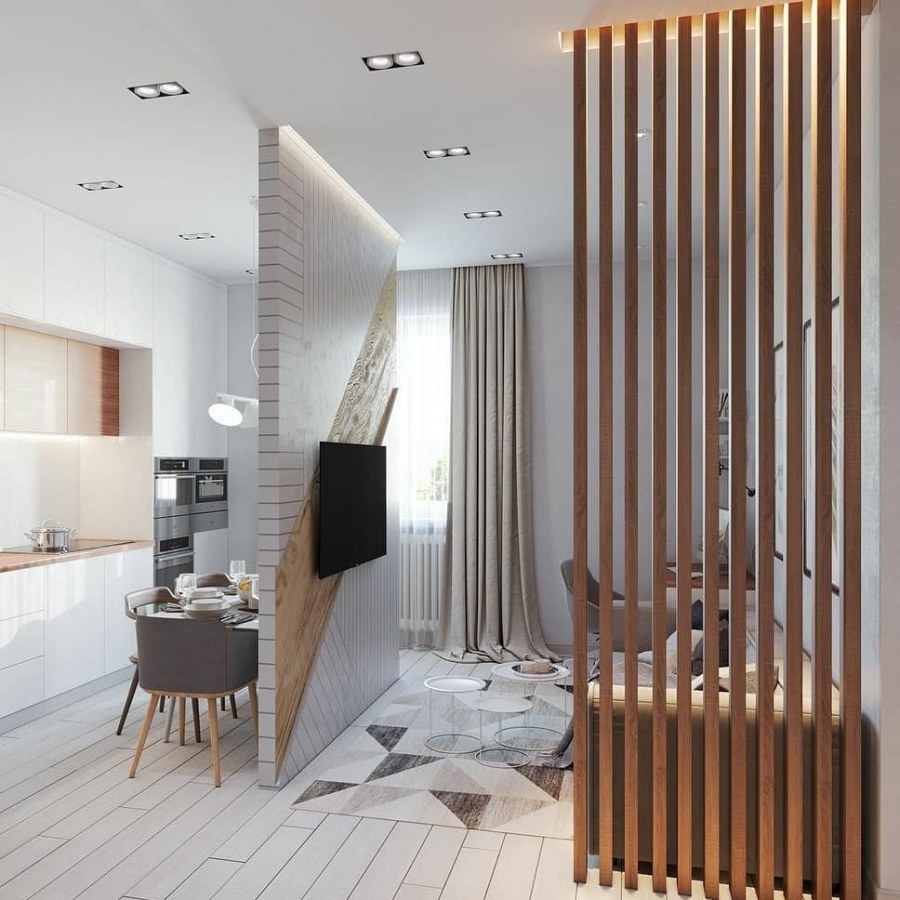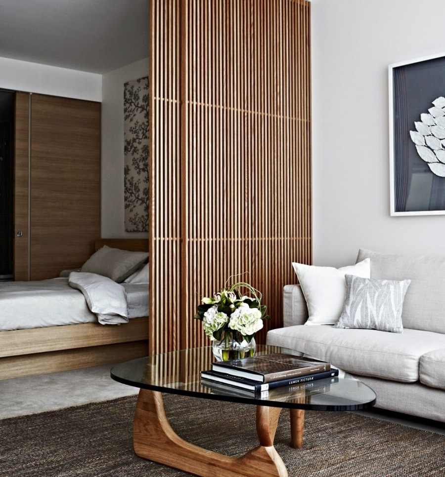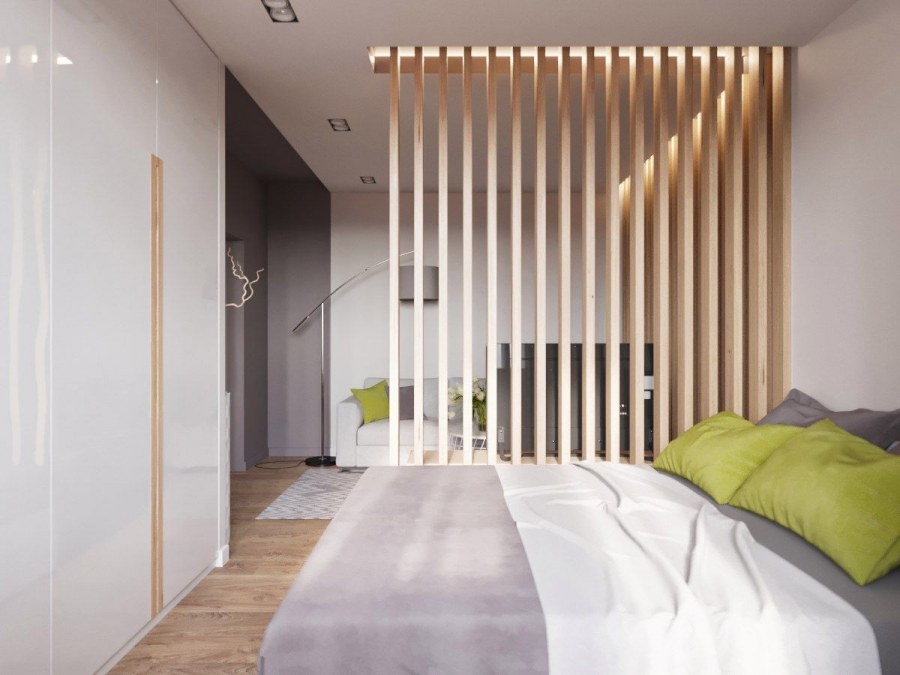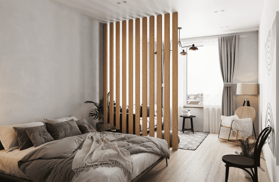 Деревянная перегородка для зонирования комнаты