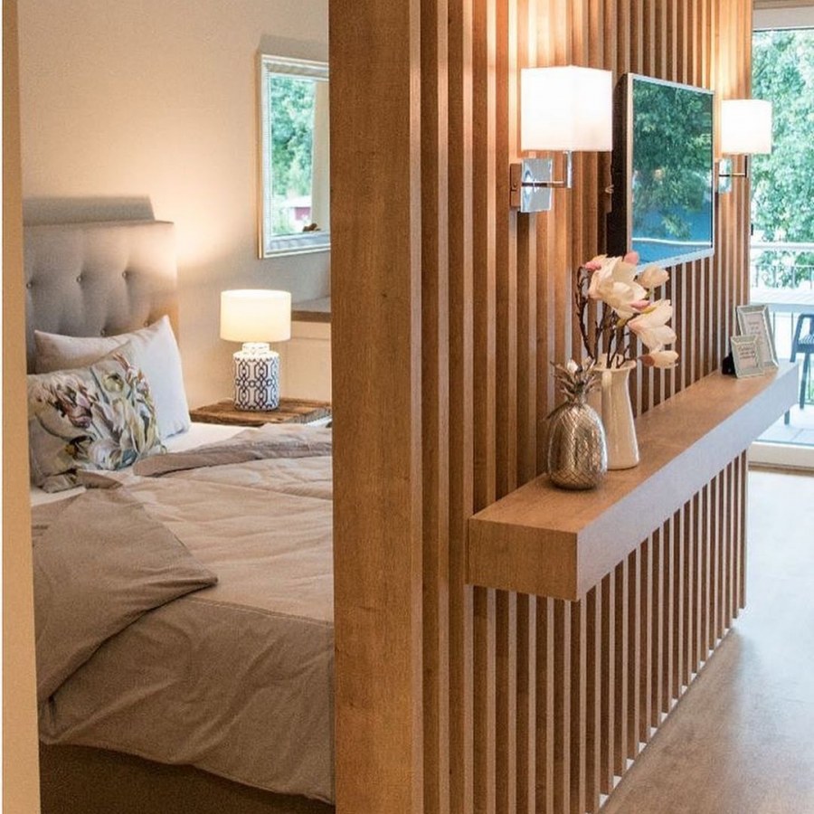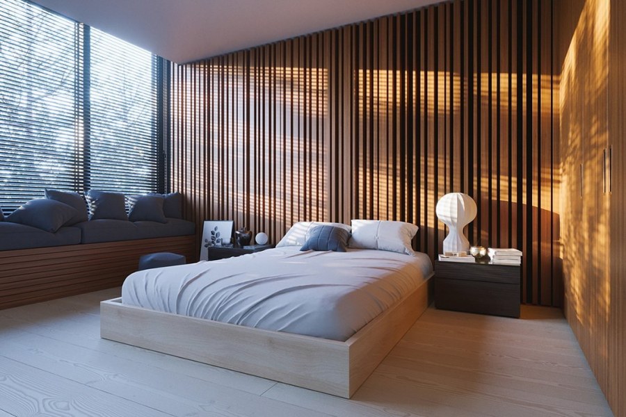 Деревянные рейки в интерьере спальни