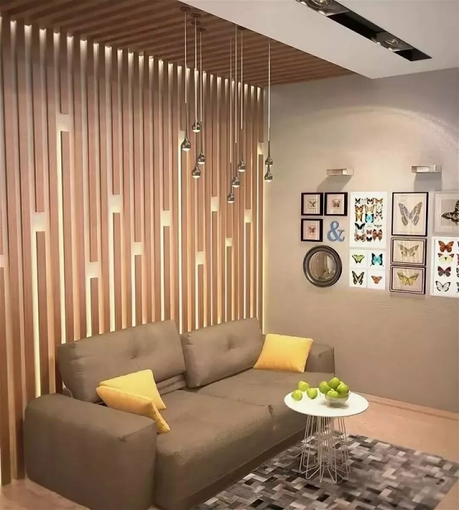 Рейки на стене в гостиной