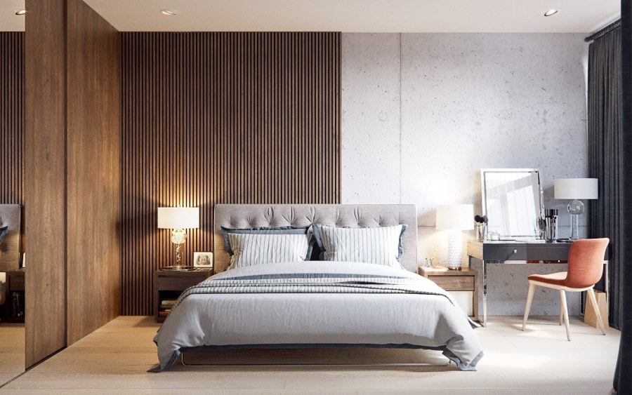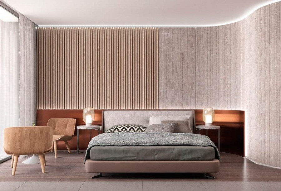 Деревянные панели в интерьере спальни