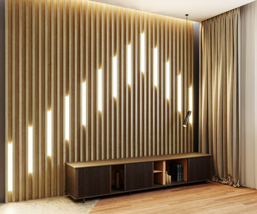 Реечная стена с подсветкой