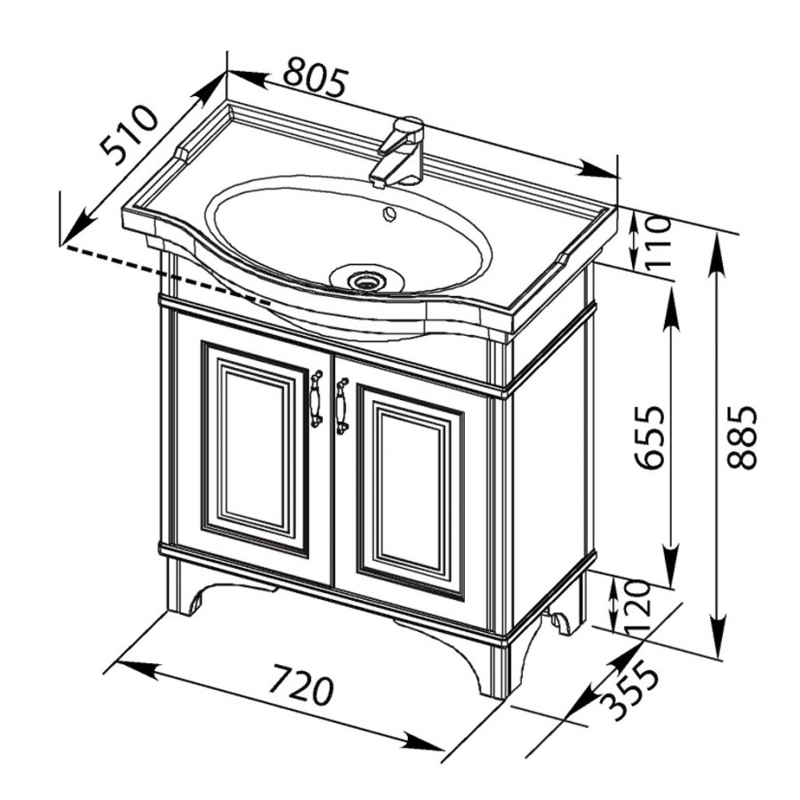 Topline Milano TM 80-02 тумба напольная 80 см с умывальником