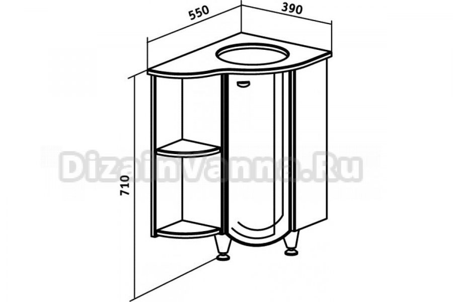 Тумба угловая Runo бис-40 (под умывальник Элегия-45) левая