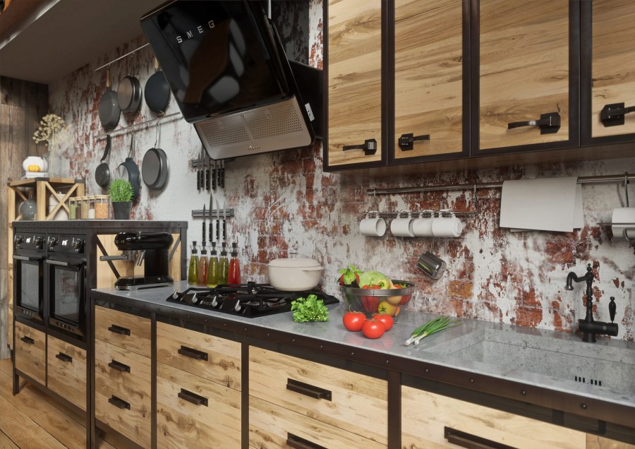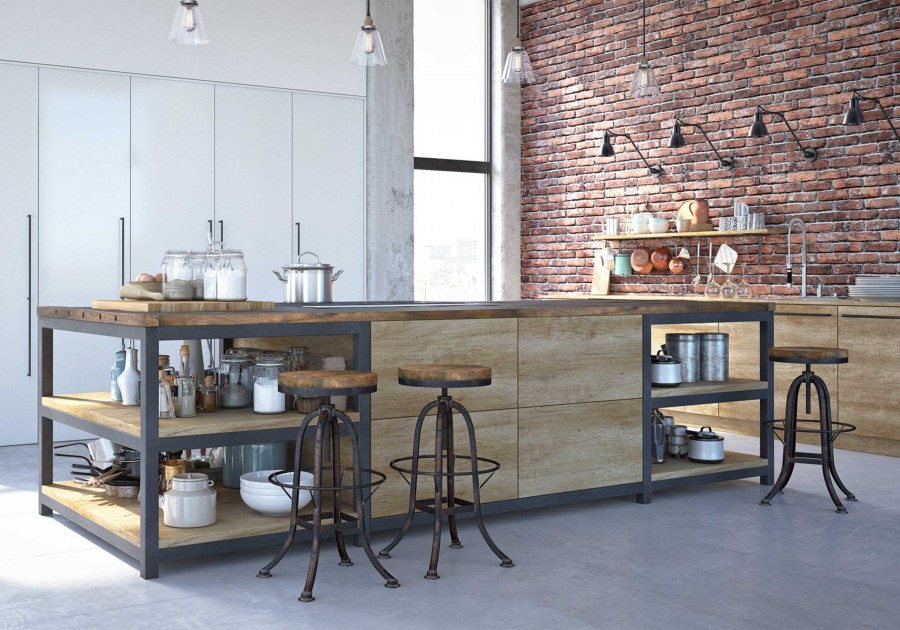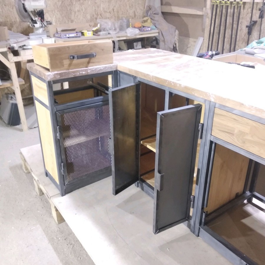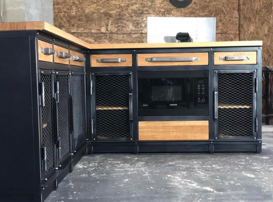 Кухонная мебель в стиле лофт из металла (68 фото)