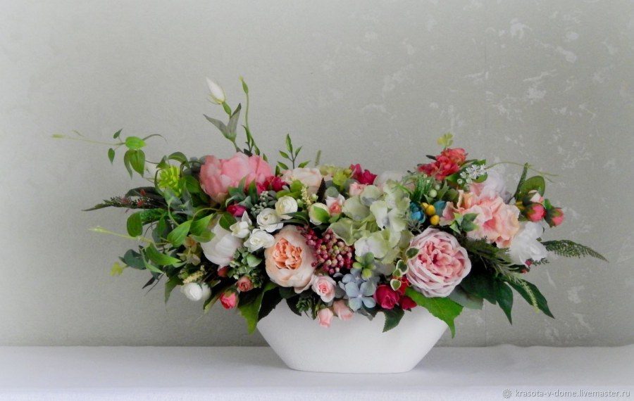 Экибаны из искусственных цветов для интерьера (65 фото)