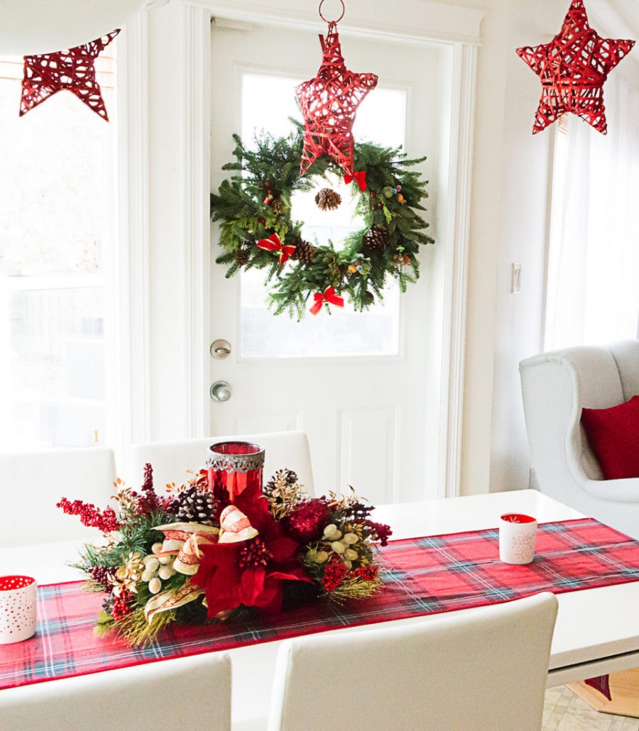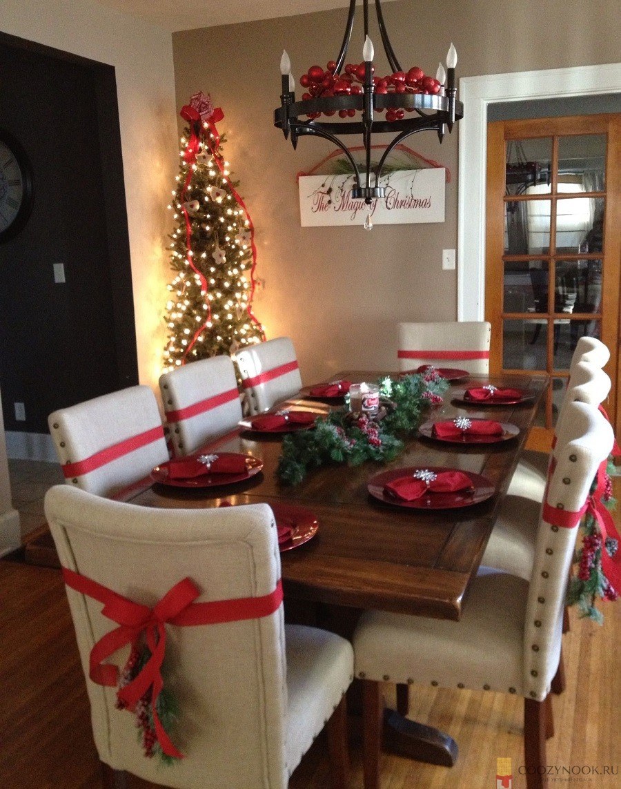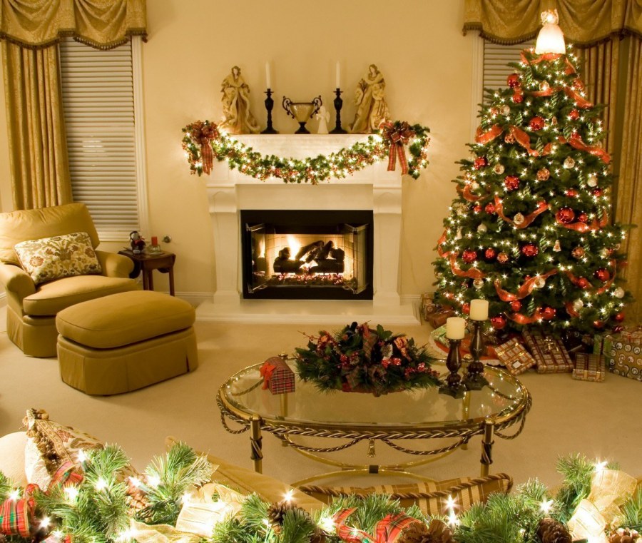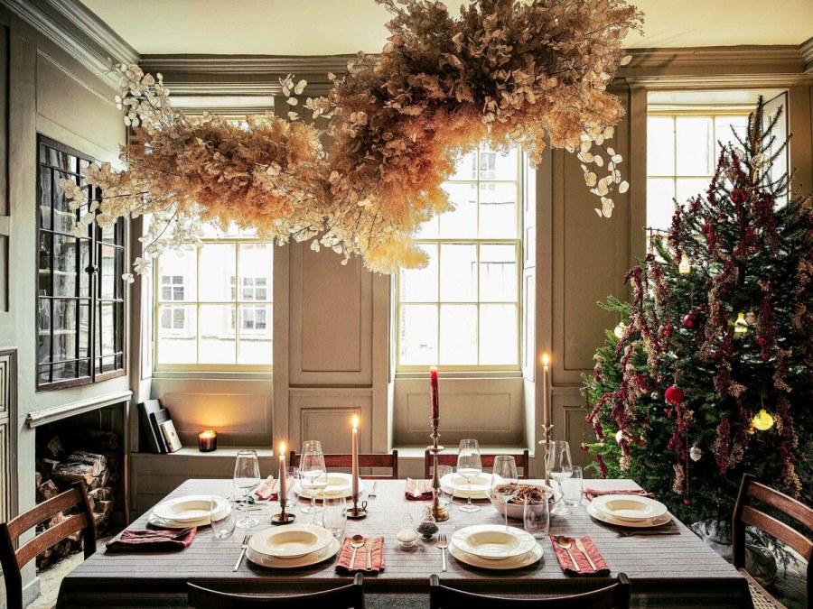 Не стоит забывать и о второстепенных зонах: каминная полка, обеденный стол, оконные проёмы и даже лестничные перила могут стать акцентами праздничного оформления. Например, гирлянда из хвои с клюквой и миниатюрными свечами на камине создаёт ощущение уюта и тепла, а композиция из веток эвкалипта, шишек и тонкой золотой нити на зеркале добавляет изысканности без излишней вычурности. Именно такие детали делают проект украшения дома к Новому году завершённым.