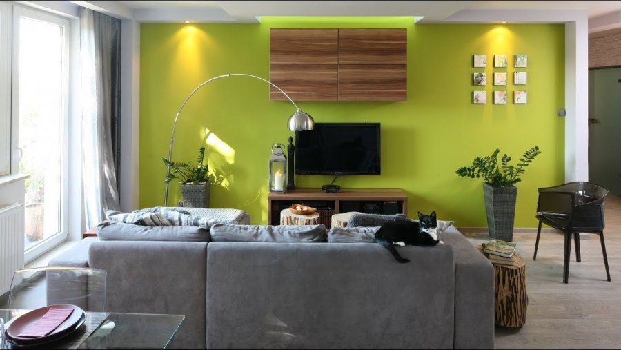 Акцентная стена в интерьере гостиной в скандинавском стиле